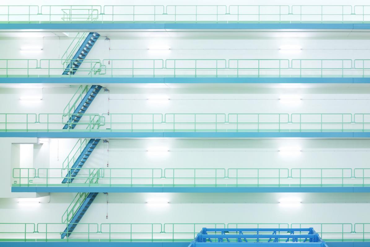 Enormous spaces, endless walkways, wide sluices, cryptic signs; all combined with miles of cables and pipes. They form a technical universe that radiates a cool logic. A hidden world, known only to a few and yet which has a huge influence on our day to day lives, absolutely essential in fact. Nuclear power plants, coal-fired power stations, storage facilities for nuclear waste and other energy systems can at the same time intimidate and fascinate a visitor. They seem to have originated from other planets or science-fiction films. Strange worlds, emanating a cool logic; cathedrals of industry, temples of an energy-guzzling society. Energy systems are hidden universes, accessible to very few people, highly protected against accidents and terroristic attacks. My intention is to capture these plants on film in an artistic manner. Pure information is in the background. The idea is more about perspectives, colours and shapes. What I am proposing is to dissipate technology into aesthetics, at least to a certain extent. Only the caption will remind the beholder of what he or she is contemplating: A highly complex system whereof our modern life depends. Energy systems which serve us and, at the same time, can threaten us.