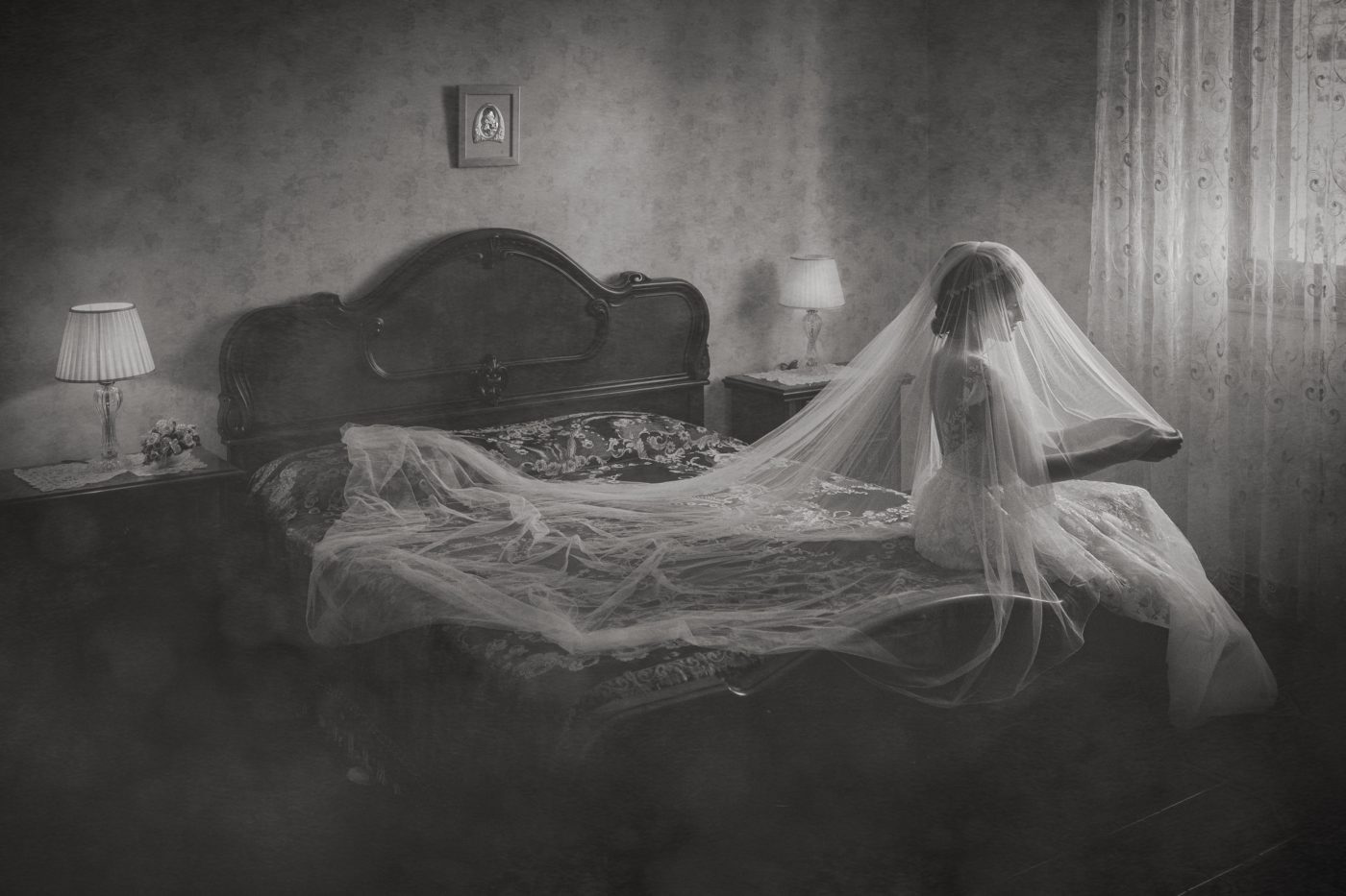 Italian-born photographer Pino Coduti is a multi-awarded professional photographer specializing in wedding and portrait photography. This photo was meant to capture the wedding day, a divine light in the room, the veil of the bride: an infinite dream.
