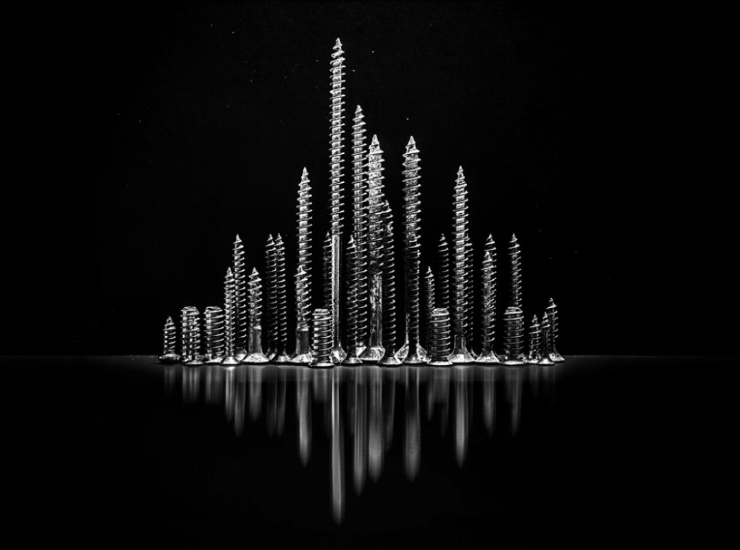 This series of images was created with the intention of presenting conceptually the great cities of today. In fact, I am based in the American and Asian cities, with huge buildings and colors that illuminate them at night. In a first approach the first image "city of colors" is based on the colors of urban landscapes around the world, it brings the colors of a city illuminated at night. From a conceptual perspective, the architect appears, a fundamental piece in these creations, an image that demonstrates the vision of these people who see us every year with art in the form of buildings. The "Electric-city" image, showing today's cities, population growth, people's mobility for coastal zones and concentration, is summed up in a massive energy demand that has a widespread impact on life and the environment around the globe. I did not want to be left out of the events that affect security in the same cities, in this case, I paid homage to the US twin towers. The image "the city" is a view of New York City. Never been there, but this was my first creation that defined this series of mine. All images were created with simple elements in my house, on the black glass and the black card in the bottom, except for the "twin towers", were used for a long exposure of the ocean, previously captured in the north coast of my country, Portugal A last view created with nail rolls presents a view of the tower of Pisa in Italy, leaving from the perspective of big cities, passing to a romantic and historical city.