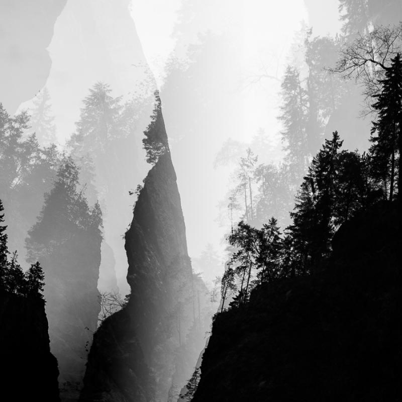 Wonderland - Multiple exposure shots. The aim of the project 'Wonderland' is to create a unique visual experience by destroying the character 'land' as we know it. The freedom of nature becomes artistic freedom of creation as the self-willed forms of nature are being ordered into a peripheral structure. By this loses its autonomy and at the same time gets a new perspective from the artist.