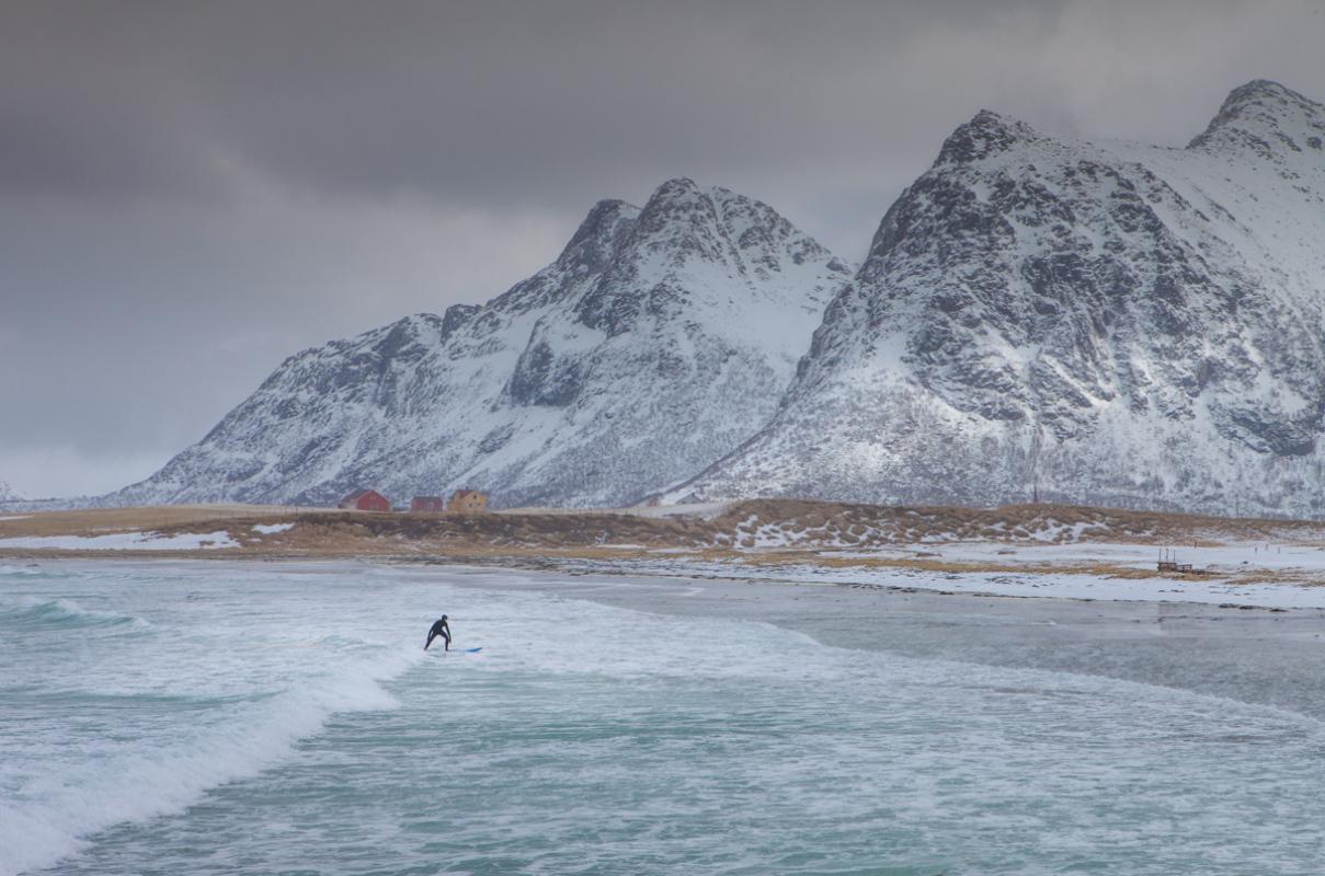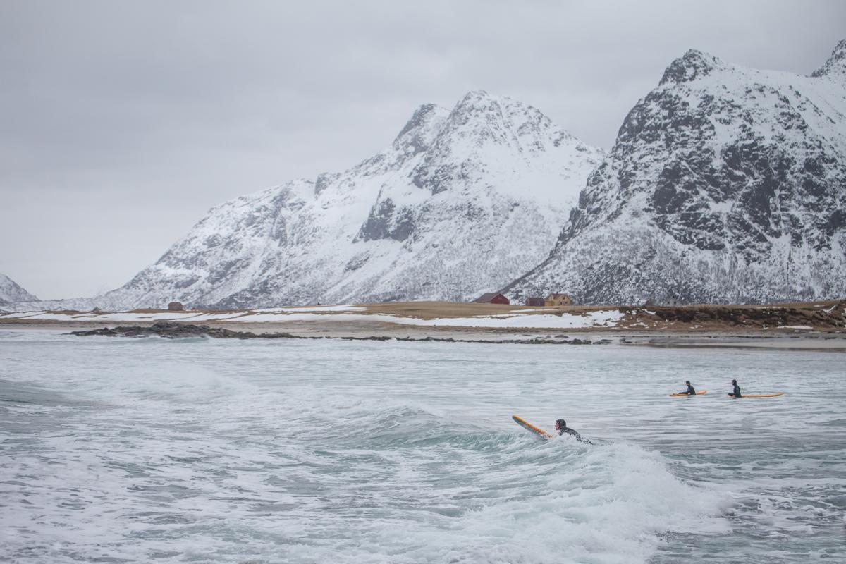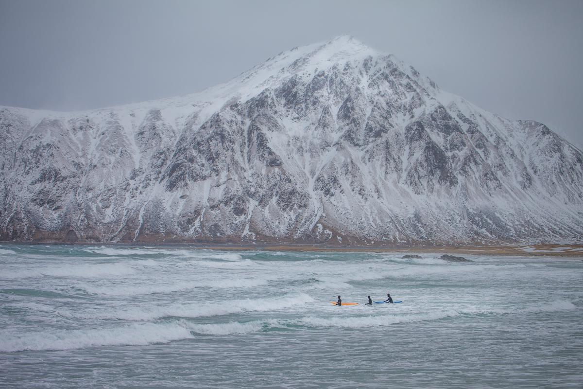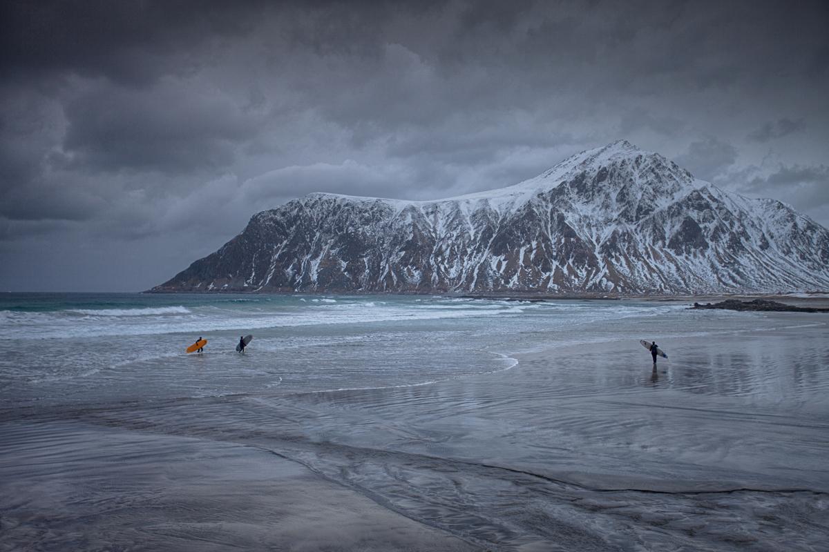 Surfers enjoying the life and hesztationg to enter into the cold ocean waters at the same time. Series taken in Lofoten.