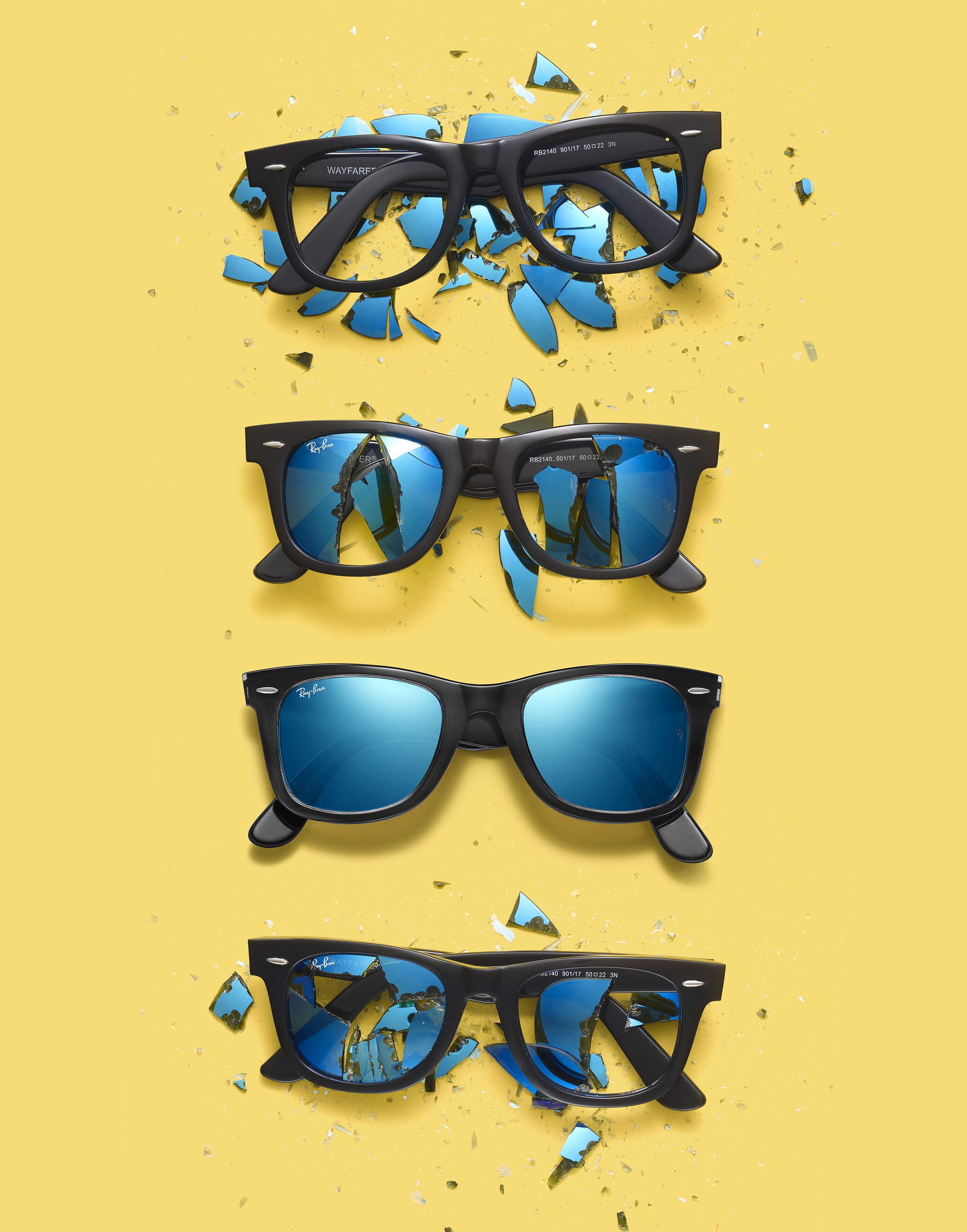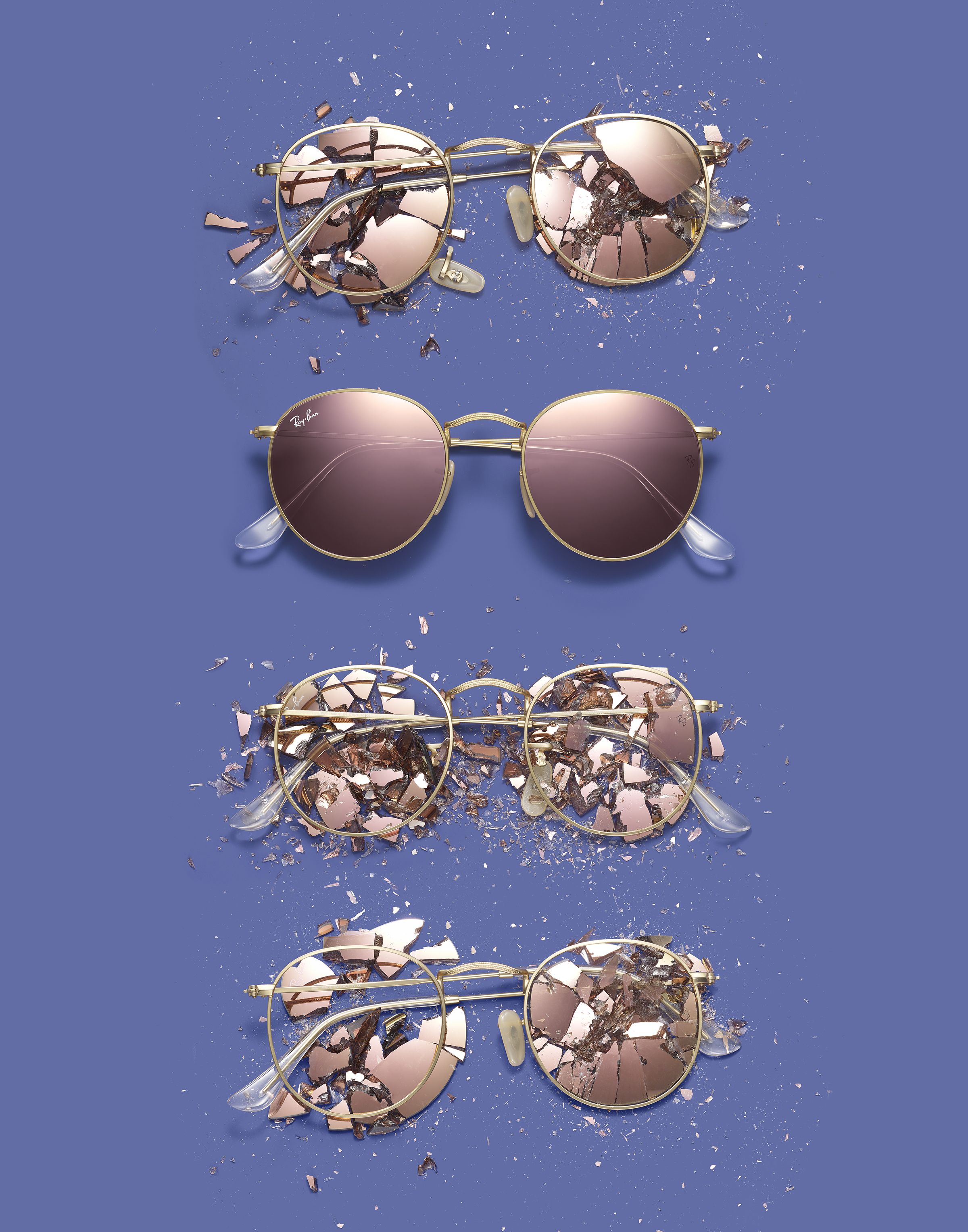 Inspired by all of the counterfeit luxury goods sold on Canal Street in NYC, I got the idea to make an interactive 'photo hunt' on Instagram. Using the multiple images in one post I was able to have the first image, showing one real Ray-Ban and three counterfeit, allowing the viewer to try and spot the differences. The viewer would then swipe right and see the next image with the counterfeit sunglasses smashed. To do this project I had to buy the highest quality fakes directly from China. They were indeed impressive copies; that is until the lenses break and you're left with razor sharp shards