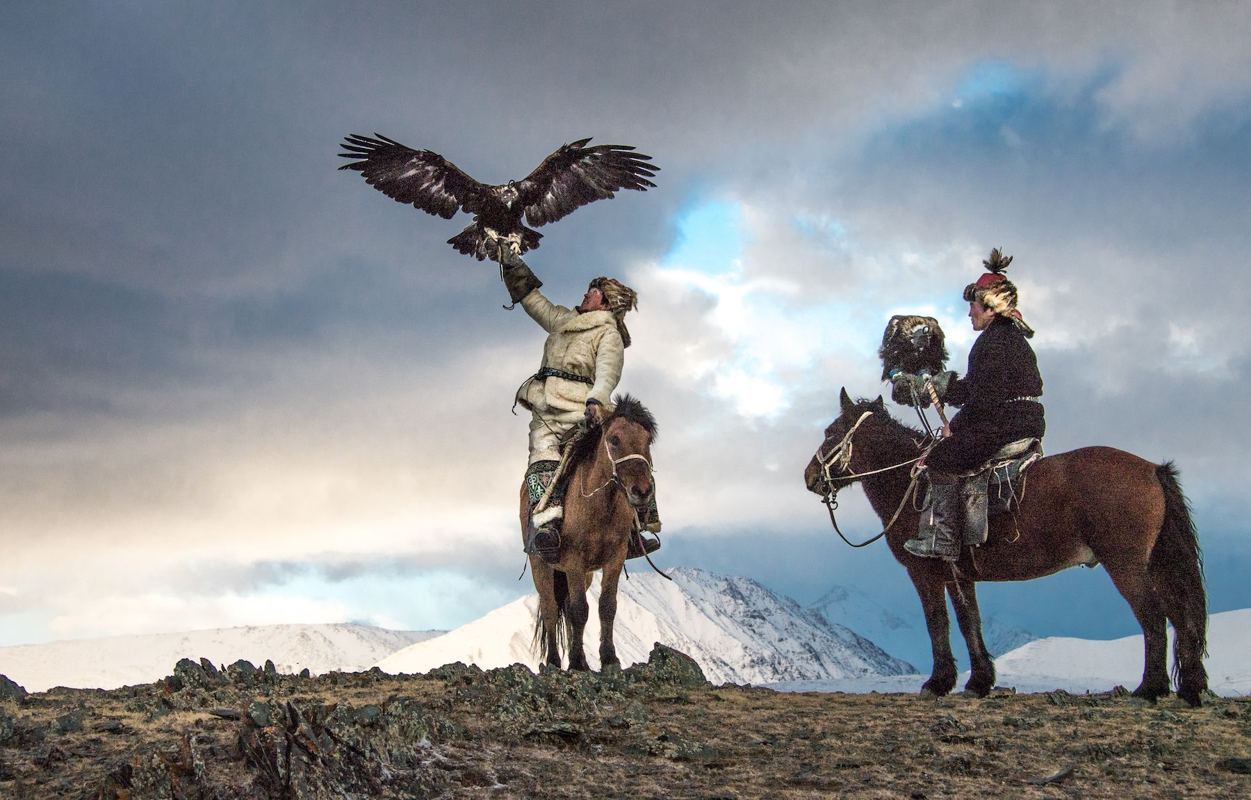 These two nomads at sunset show off the bond they have developed with their mature eagles. The 2018 Golden Eagle Festival was a great cultural experience. Spent several days riding and flying across Mongolia meeting friendly Kazakhs, staying in gers, photographing the mountains and plains as well as the eagle hunters in various competitions. Learned how the eagles are captured, trained and the bond that exists as well as the emotion of releasing them to the wild after years of partnership.