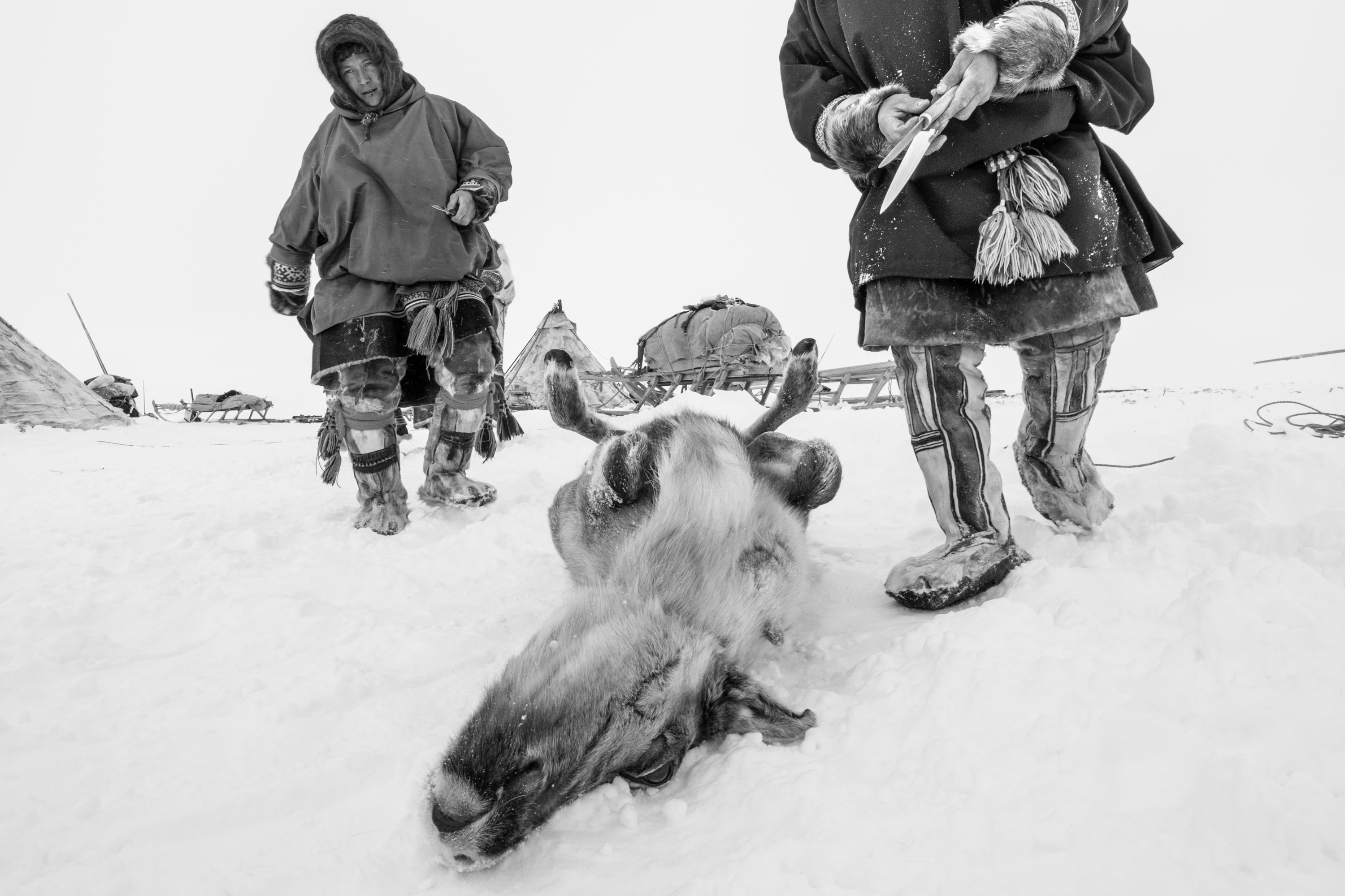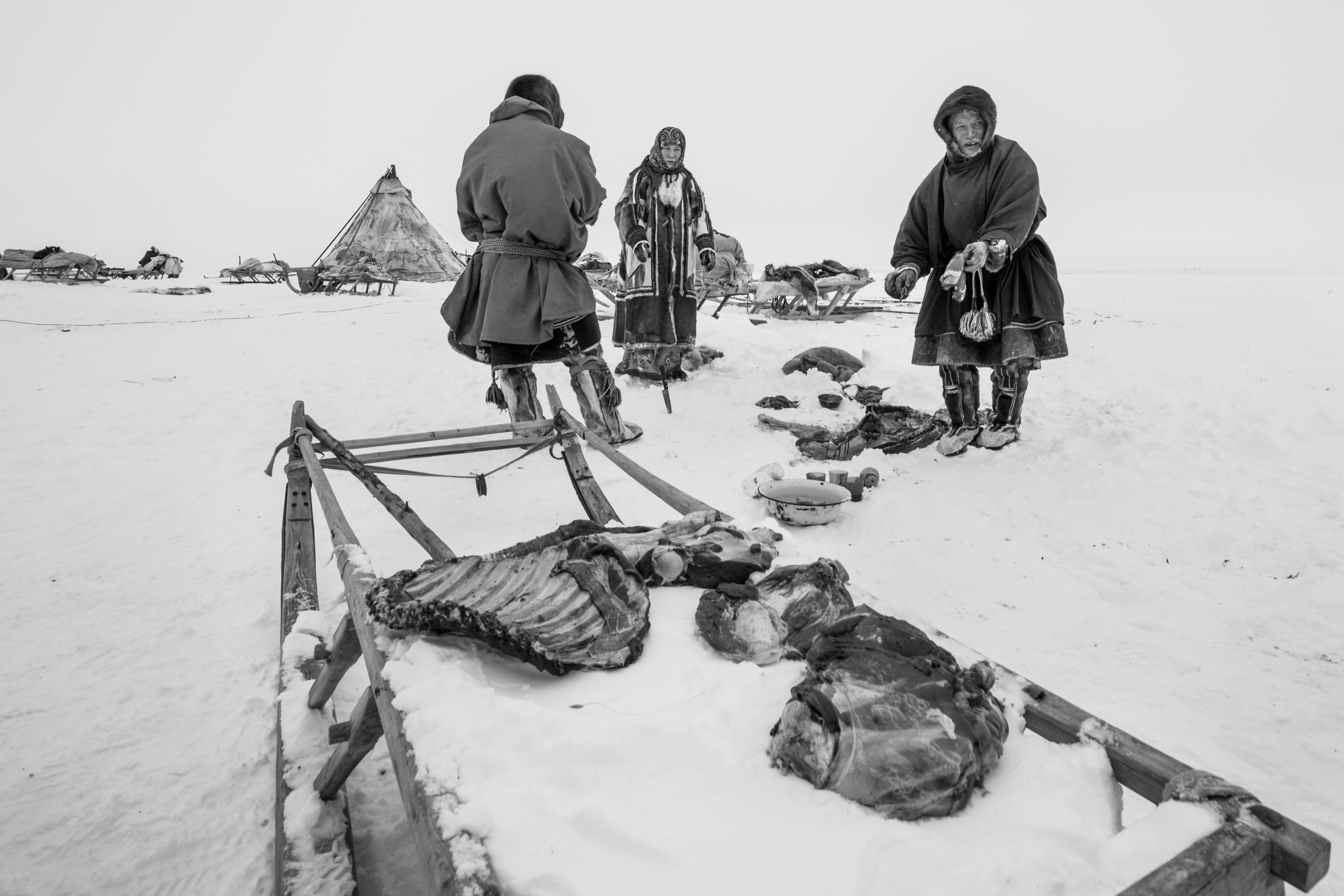 The Yamal Peninsula: a stretch of peatland that extends from northern Siberia into the Kara Sea, far above the Arctic Circle. Yamal in the language of the indigenous Nenets means the end of the world; it is a remote, wind-blasted place of permafrost, serpentine rivers and dwarf shrubs, and has been home to the reindeer-herding Nenets people for over a thousand years. Amazed by this family, who live in perfect harmony with their surroundings in polar conditions. I hope they will be able to protect themselves from the relentless attacks of consumerism, pollution and discrimination.