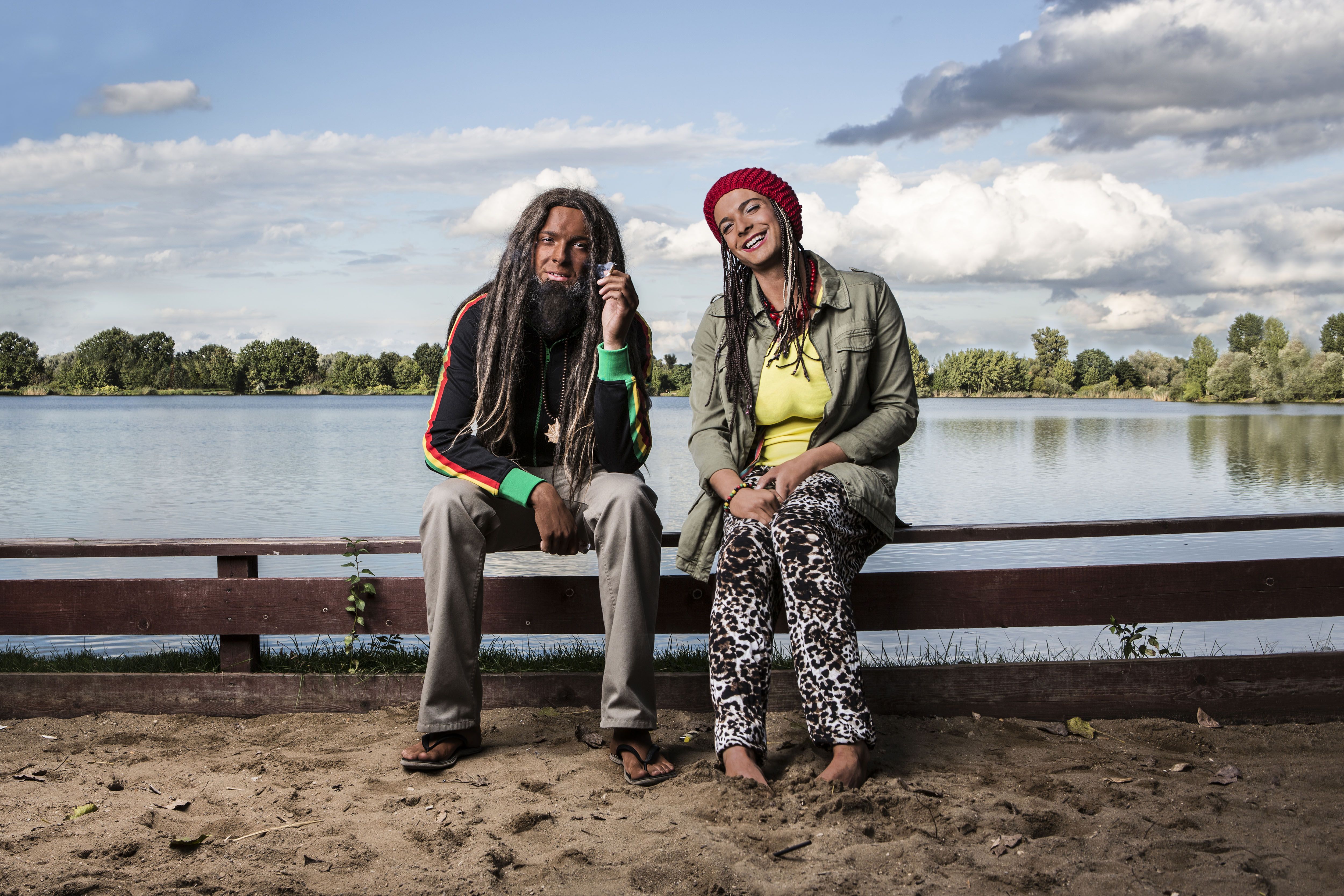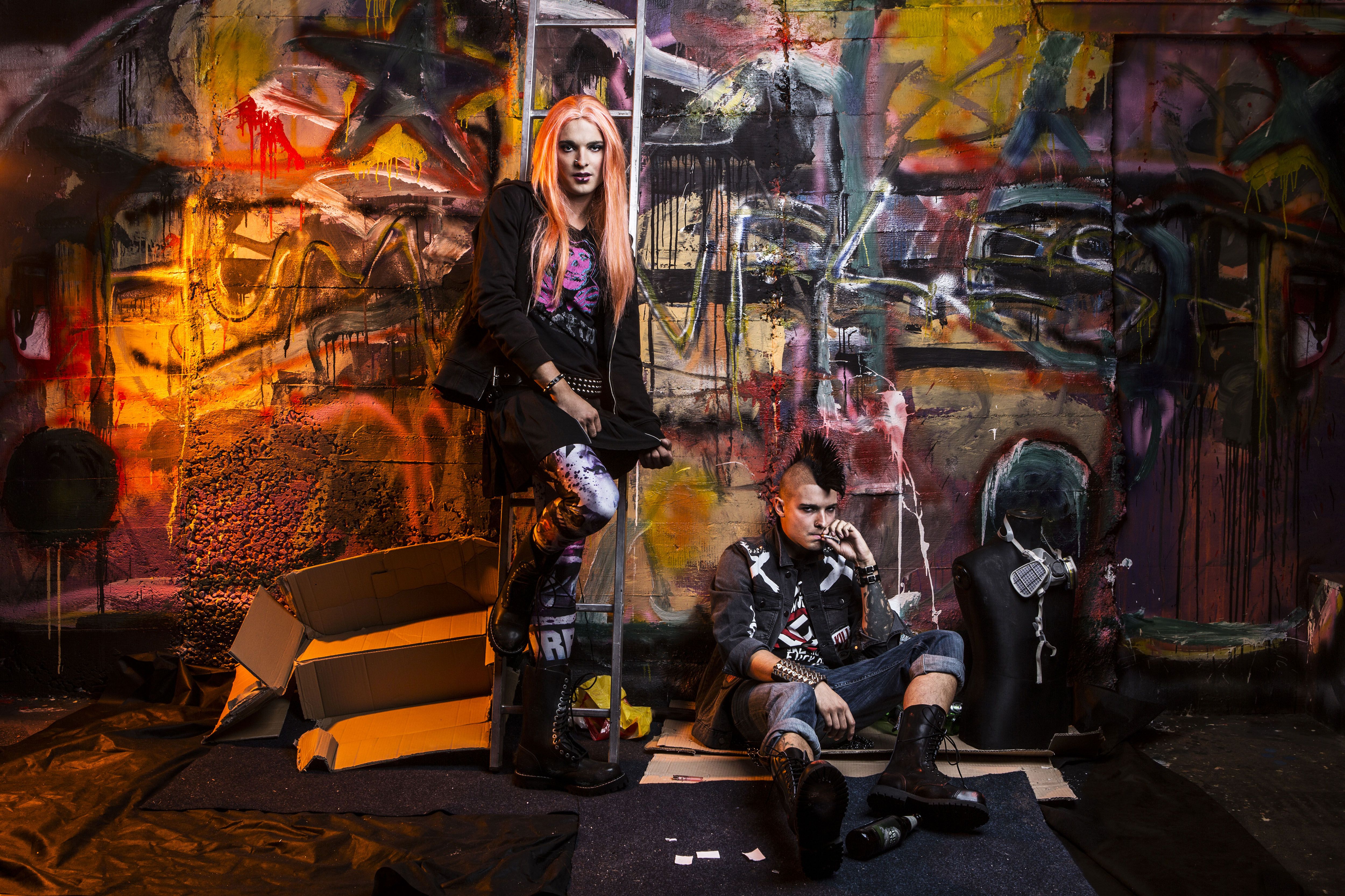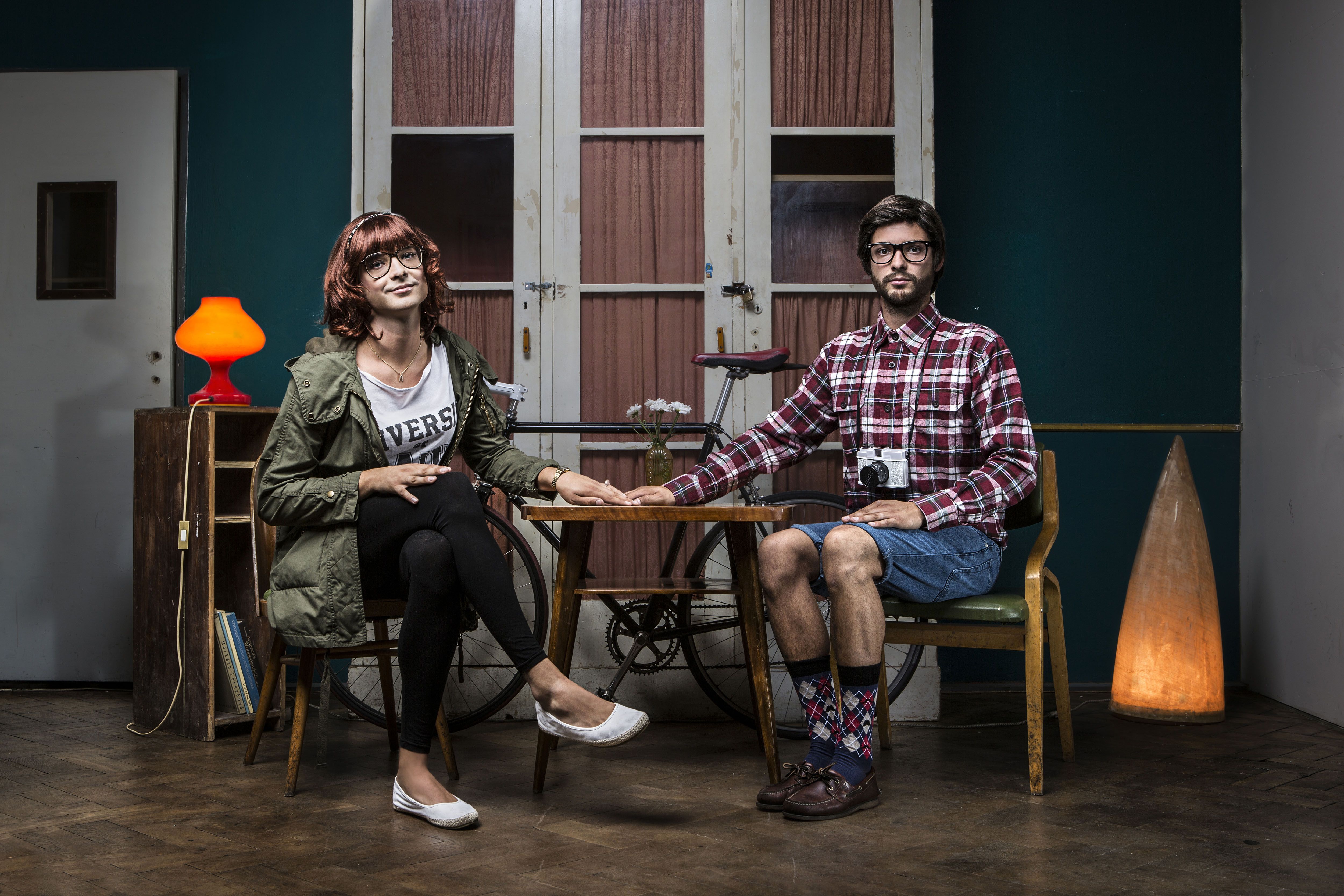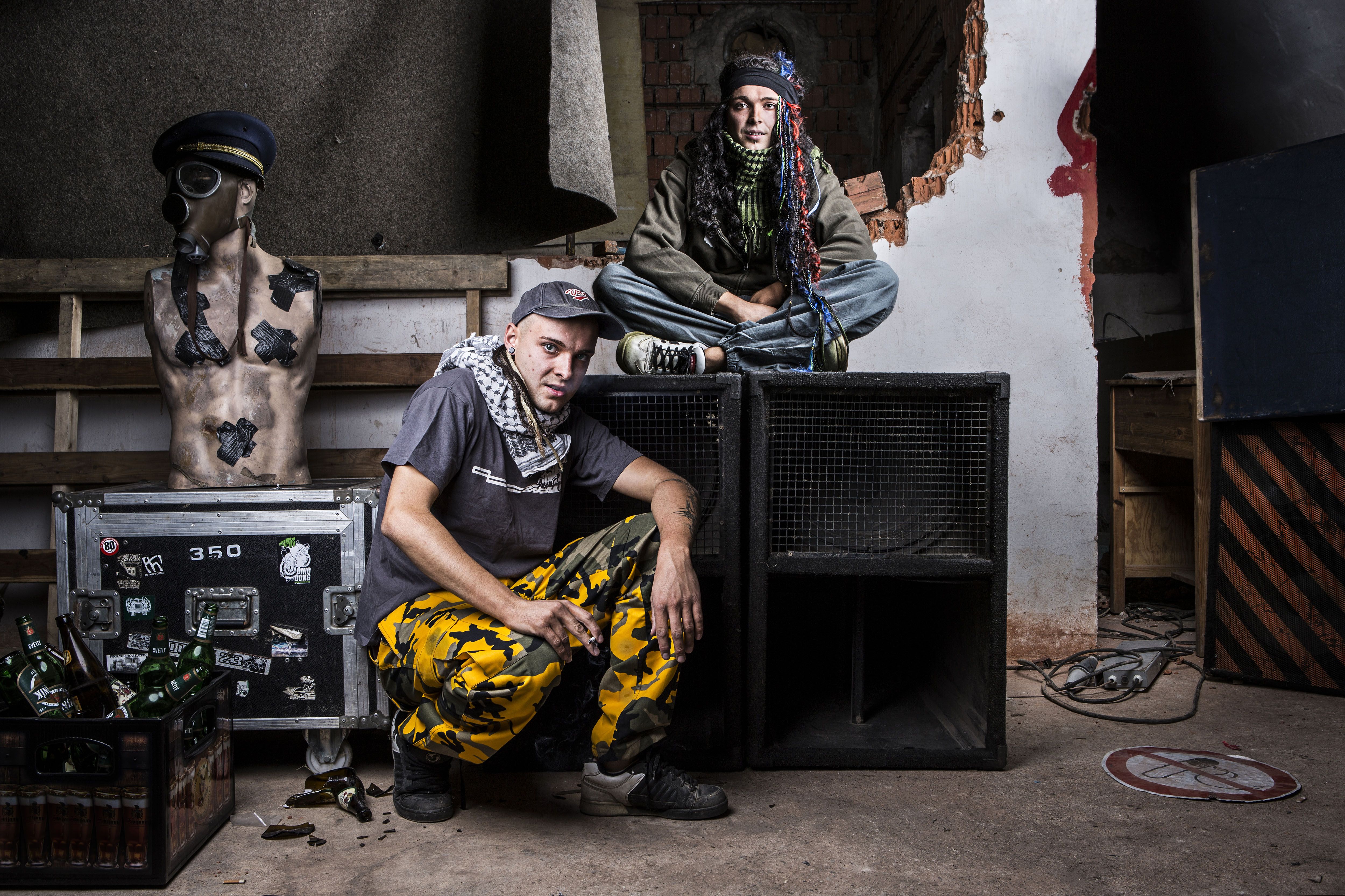 A series of staged double self-portraits. The author poses as six couples - fans of certain genres of music. On all portraits he acts both characters - man and women. Genres: Punk, Hip-Hop, Indie Rock, Free Techno, Reggae, Metal