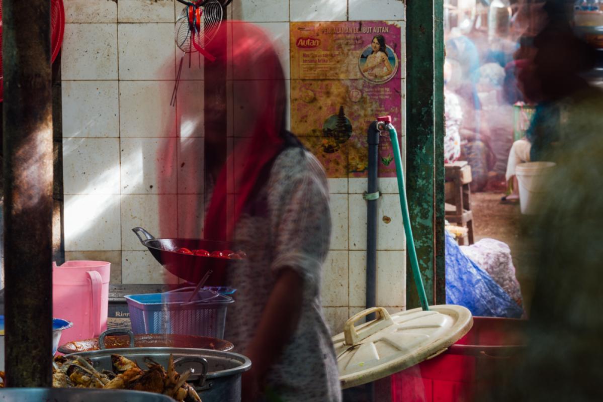 For over a century, the Pabean Market has been the center of the spice trade in the agrarian Indonesian province of East Java. The sweet smell of spices filling the air; workers carrying baskets bursting with produce and seafood to the compact, cluttered shops lining the labyrinth of alleys the Pabean Market, is typical (but in some respects unique) for markets in Java. From the air, Pabean Market resembles a spider web, the threads representing the interconnecting alleys. I had spent a year in this web, trying to capture the heartbeat of the century-old market. As might be expected, I captured the physical atmosphere of the market: the random goods and produce, alleys with their rows of stalls. But he also found the heart of the market: the people. Hidden in the crowded corners of the market, jammed into a twelve-square meter stall (one of hundreds) but living peacefully with their neighbours—sharing life space– the shopkeepers and laborers yearned to be found, to be discovered. The images of the faces reveal the emotions and expressions, the various cultural, religious and psychological backgrounds—a mosaic of humanity in peaceful co-existence. I once again set foot in Pabean Market—a place I used to visit with my mother as a young boy. This century-old market, thriving since the colonial era, reflects a wonderfully dynamic and complex life. It has become a melting pot that unites Javanese, Madurese, and Chinese communities. The devoutly Muslim Madurese, the tolerant Javanese, and liberal Chinese (whose family members are allowed to hold their own beliefs) each play a distinct role in the economic activity of Pabean Market. They occupy their own niche, but all work in synergy. They have their individual beliefs and convoluted backgrounds, but all are united in a common goal: pursuing a livelihood in Pabean Market. The natural beauty of the architecture, despite being in need of maintenance, reflects the strong and diverse native culture, as symbolised by the traditional dress of the Madurese merchants. This display of pride in their heritage touched my heart, leading me to understand and identify with that intriguing culture. Additionally, I came to learn and appreciate the market way of life as an aspect of the life that God has created for us all. Life is not forever linked with worldly materials or wealth; it is also about the things that we can feel, things that we can share with others. Sharing the bitter- sweetness of life, interacting with others, and appreciating life itself are what makes this life worth living. I hope that my photographic journeyand interaction with the denizens of Pabean Market can somehow convey a representation of beauty and harmony, as well as showcasing other aspects of life and cultures that we should preserve and appreciate.