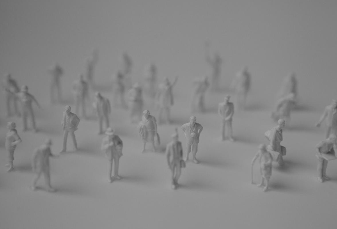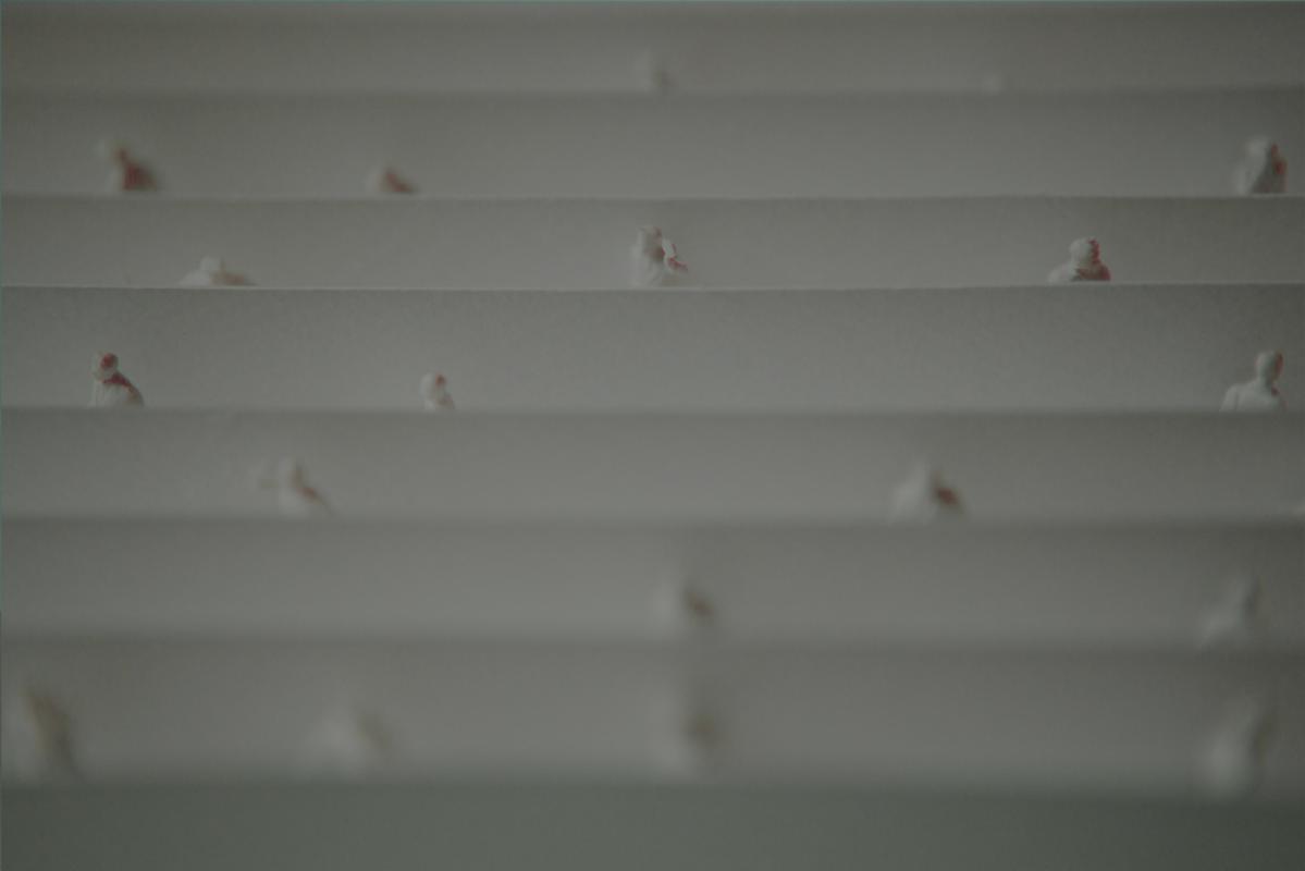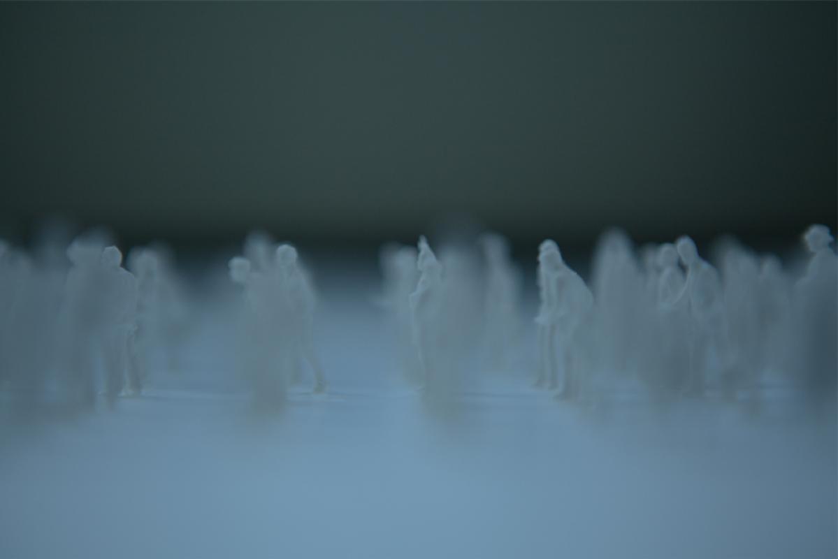Did I start this work, it was over the peripheral. One day, I was waiting for the signal in the neighborhood of the crosswalk. Suddenly I saw surrounded around, a lot of people found a figure which does not recognize the peripheral while inserting the earphone to the ear. The situation was felt only unfamiliar to me. I think we are of the current, there is no spare time to explore the surroundings, also, or suspect each other, I think that has been exposed to a situation that must be wary. I think there is no anxiety and the boundaries of the modern society, it felt very desolate. I have thought of such a form that it is "society is not the color of the individual", was supposed to be working in a model that has not been painted in order to express this.