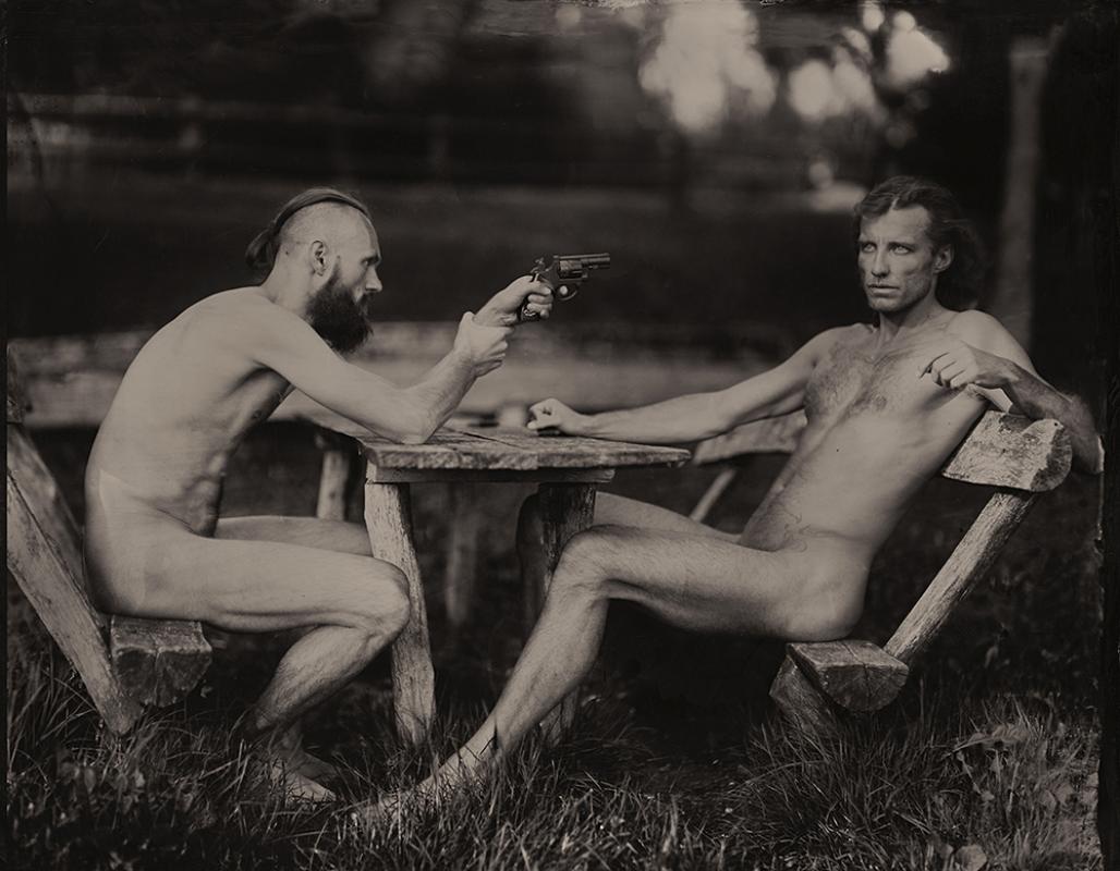 Ambototype was made in the wet collodion technique on glass using by large format camera Kodak View Kamera B 6x8" dimensions 6x8" Exposure 5-6 sec. Model: Model: Dawid Hemke, Model: Tomasz Balon Podlaskie Plenery Fotograficzne