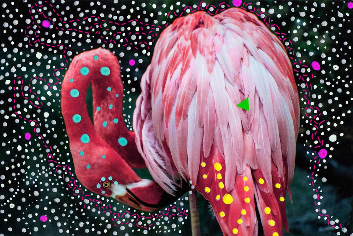 A series of photographs "Techo Birds" was made as an experiment of questioning the notion of freedom. How much are we truly capable of freeing ourselves? Techno represents the direction of music that we associate with progressive festivals and whole night dancing at the concerts; it is the time when we celebrate and make ourselves free. Zoos are a place of fun and education, but animals are detained there and linked to the same environment for the rest of their lives. Zoo is a symbol of capture for me. With graphic interventions on photographs, I wanted to illustrate the emotion of liberation, both of my personal freedom and the liberation of captured birds. Photographs explore how might their dance look like if they had a liberation techno party, what would be the rhythm and color of their freedom. Photographs were created in zoos in Belgrade and Amsterdam, and were graphically upgraded by combining several techniques such as painting, collage and drawing on top of the photographs themselves.