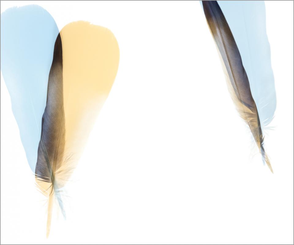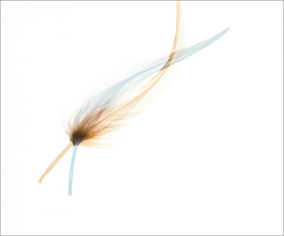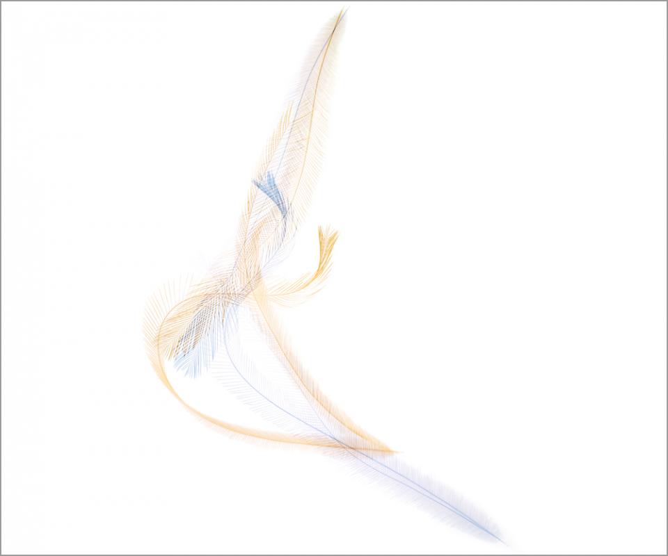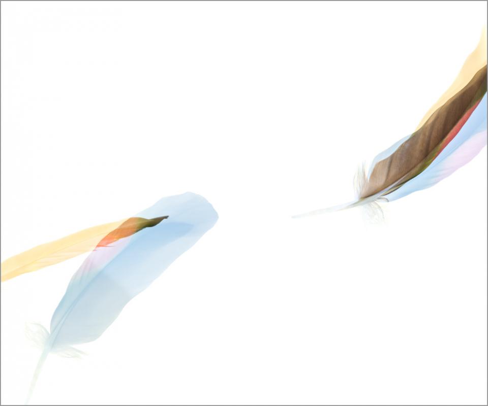 THRESHOLD noun. The magnitude or intensity that must be exceeded for a certain reaction, phenomenon, result or condition to occur or be manifested. For a medical reason I did not sleep for 57 days straight. Extreme sleep deprivation will push you to the edge of sanity’s cliff. Once you've crossed that threshold jumping is the only option. I learned that without sleep the “day” never ends. On day 58 I finally slept four hours but my perception of time had been permanently distorted that the only path back to cultural normalcy was to recreate the sensation for others to experience. Employing no digital manipulation or double-exposures, the Threshold series illustrates the physical passage of time through movement. The resulting pictures capture feathers falling for a full second through different wavelengths of light while subsequently compressing the variations into a new form.
