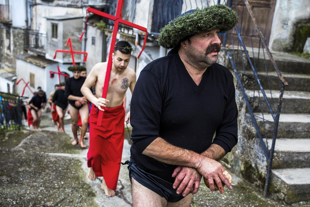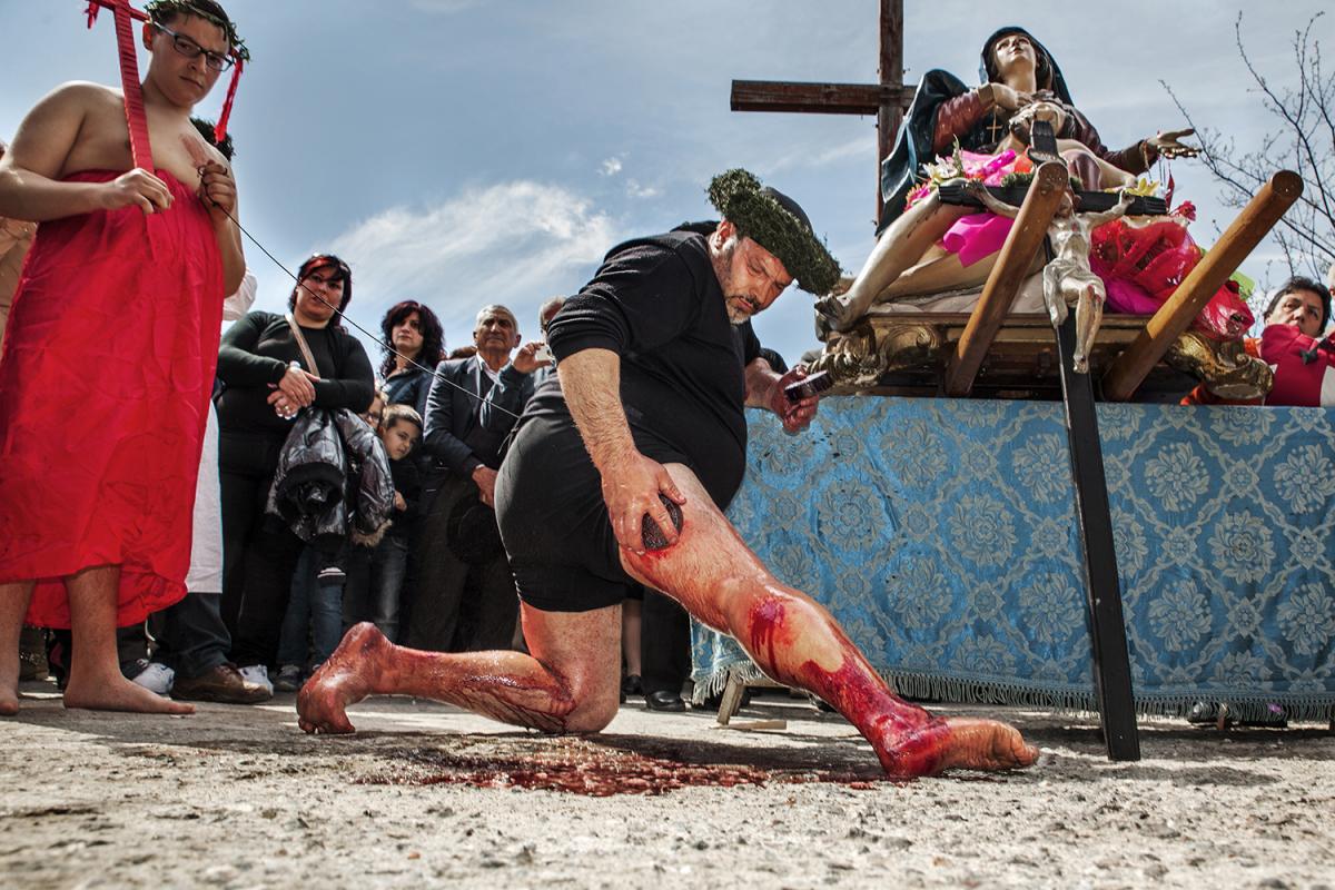 The celebration of the 'Battienti' is renewed in Verbicaro and Nocera Terinese, one of the highlights of the Holy Week in Calabria. The ritual, in many cases handed down from father to son, is repeated for centuries: the 'battienti', dressed in red with a simple short shorts, a T-shirt and a handkerchief around the head, publicly mortify their body with the scourging until make the blood flow from the wounds caused by the 'cardu' or 'cardiddo', a cork disc on which, thanks to a layer of wax, thirteen sharp pieces of glass, called 'lanze', are fixed. Full of wounds and blood, wanting to imitate those that have been the sufferings of Jesus, the doors travel through the streets of the town, releasing on the walls the signs of the bloody hands. The celebration of the doors always arouses a heated debate: from some it is considered a bloody rite and not in step with the times. And if on the one hand there are those who would like the abolition of this practice on the other there are its supporters, who in the flagellation see the expression of popular devotion.