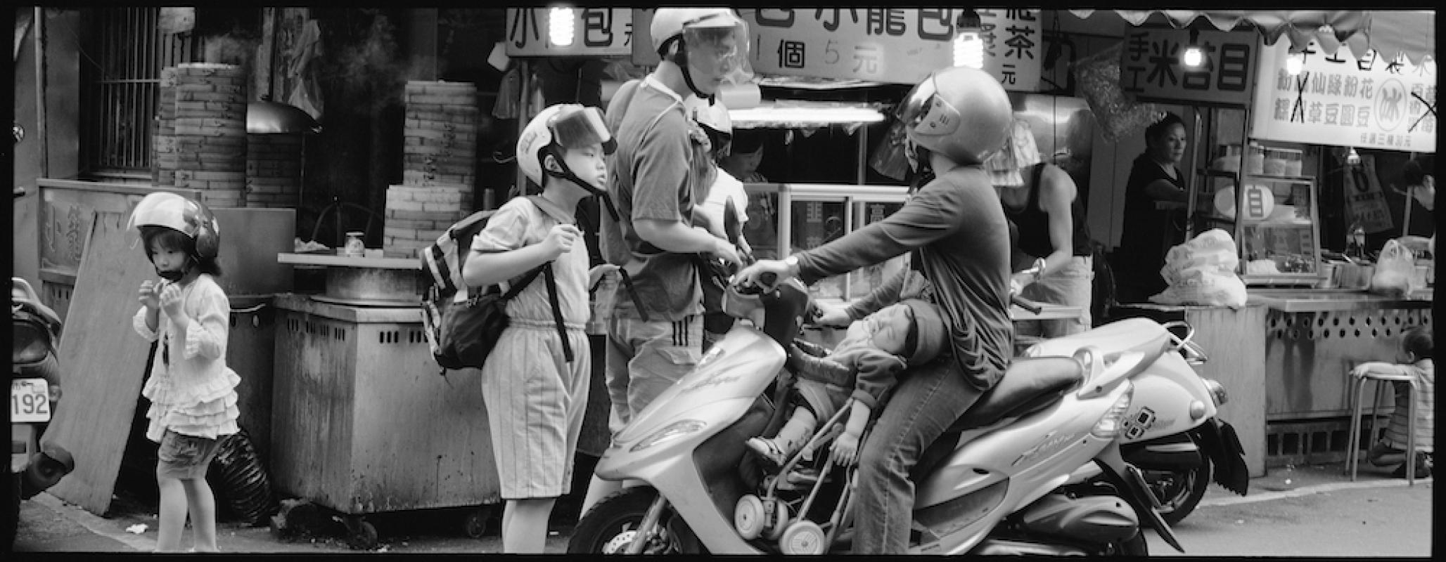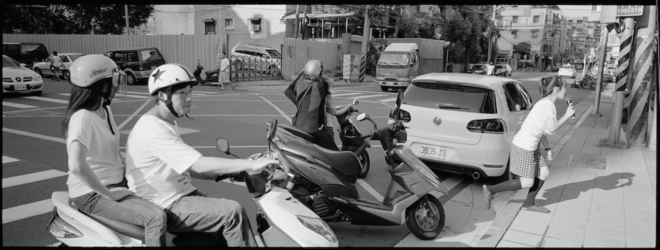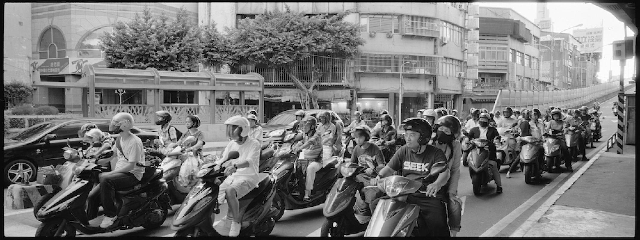Scooter has been one of the most popular means of transportation for the ever busy city of Taipei, due to the scarcity of land, high density of population, Its convenience, and affordability. Taiwan has a population of 23 million, in which the scooter users are about 14 million. It means that out of every two people, one of them would be a scooter commuter. This density ranks the highest in the world, and Taipei tops all cities in Taiwan. Therefore, the streets in Taipei are always hustle-bustle and seemingly chaotic. Many first-time visitors of Taipei are astonished by the thousands of scooters on the streets. As scooter is a relatively economical way to commute, the majority of scooter-base commuters are from middle- and low-income families. The images of scooters on the streets of Taipei therefore depict the most down-to-earth daily life of Taipei citizens. There is no better way than looking closer at these images to learn how most people live in Taipei. Scooter is also my primary transportation in Taipei. therefore, this project truthfully represents my personal experience. It is noteworthy that this project was shot entirely with panoramic cameras. As a scooter commuter myself, I often see the fluid scenery through my helmet. The panoramic perspective may be the closest to present what I've seen behind my helmet, which is the unique part of this project.