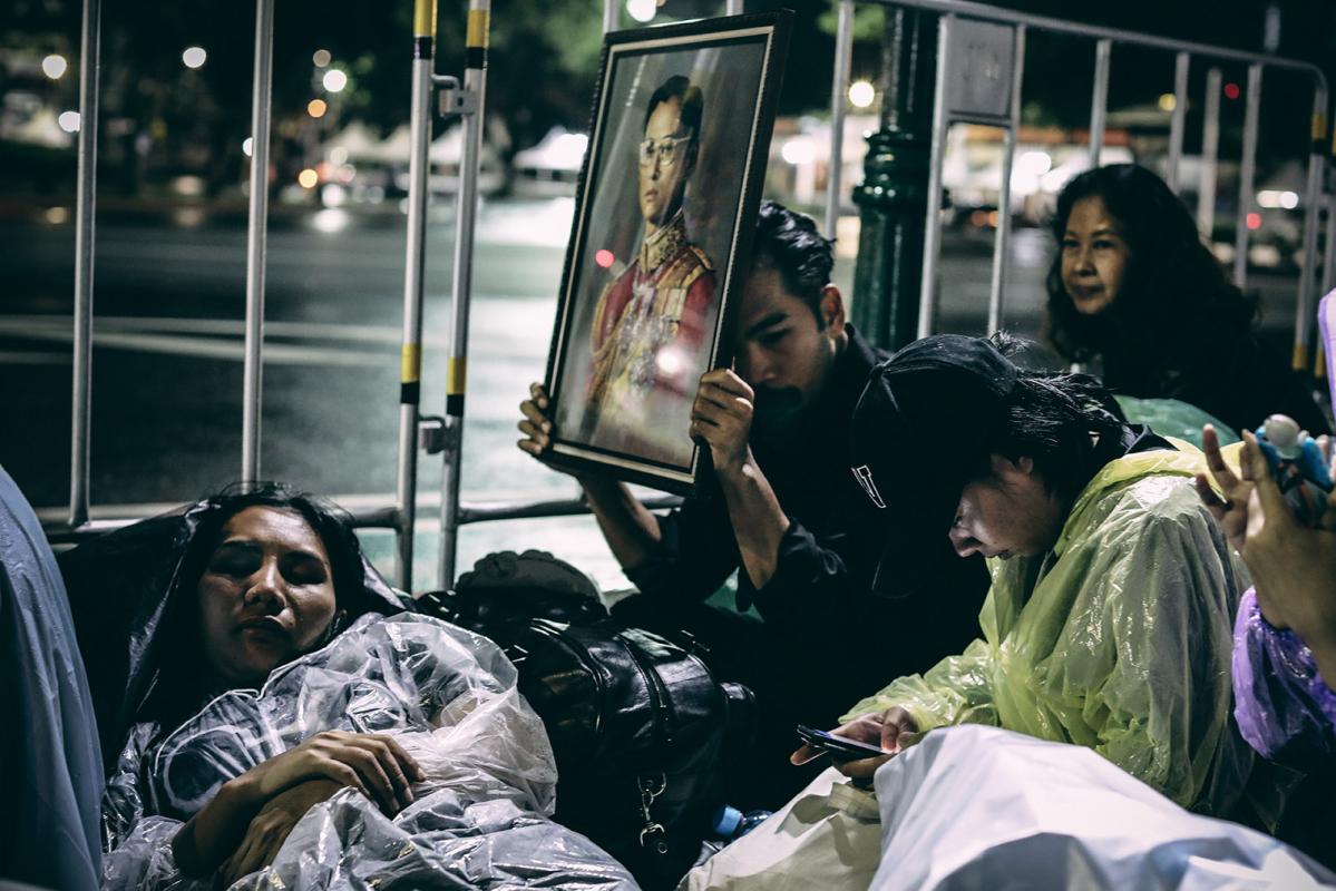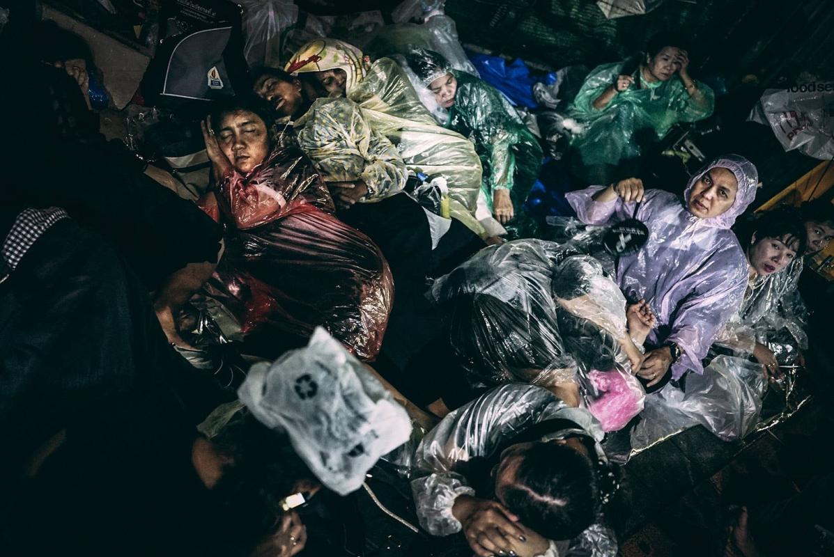 Bangkok. State funeral for His Majesty King Bhumibol Adulyadej 1927 - 2016. Five days, two cameras, three nights, so much rain, stifling hot, so much sun, umbrellas, raincoats, blacks, shoes, foot pain. Being with the people. Thousands of Thais dressed in black prostrated themselves and wept as the funeral urn for their former king Bhumibol Adulyadej, a man revered as a demigod who became the world’s longest-reigning monarch, was carried by chariot to his cremation pyre. Despite monsoon-season downpours punctuated with searing subtropical temperatures, many mourners have spent days in tents hoping to be close to the official send-off for the ninth head of the Chakri dynasty.
