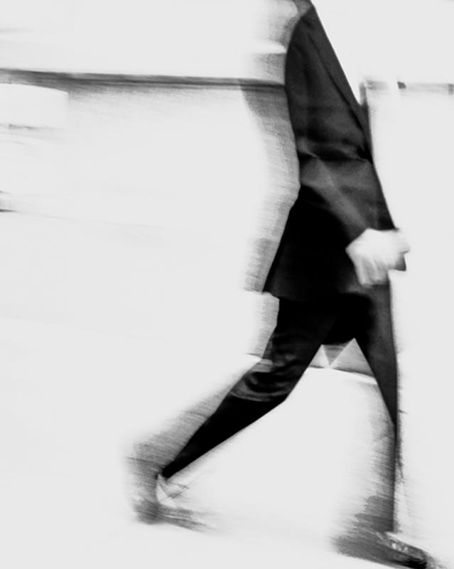 City Anonymity- In cities, most encounters with people on the street are fleeting and peripheral. People appear and disappear from view almost before we have a chance to register their presence. There is, perhaps, an instant in our perception where the casual subject is held steady but the image is already blurred by a prior instant and degraded even further by the speed at which they become a memory never fully known. Capturing my subjects the way I do, in the midst of their fleetingness, where time is slightly stretched, renders them extraordinary, unfamiliar with no possibility of recognition but also strangely sculptural.