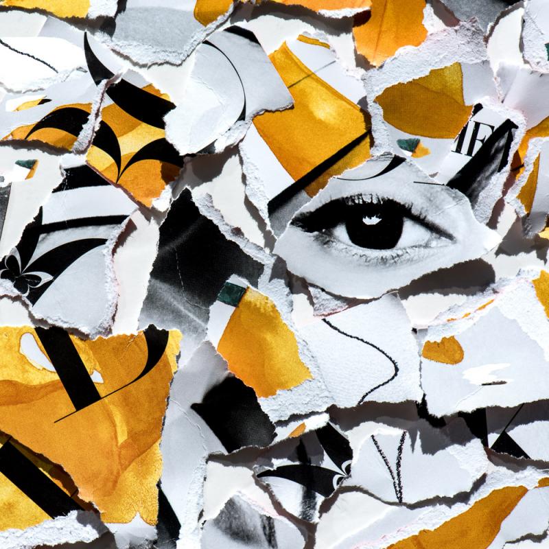 “Torn,” my latest series, is an evolution: photography rendered modern art. Taking my photomontage concept to new textural dimensions, I repurposed photographs, papers and textiles, often found in pop culture. I intentionally tear, crumple and compose to create abstract form that is structured, yet improvisational. Next, I photograph the raw media to upend and complete the creative process. Disguised elements, forms and silhouettes often surface within the composition.