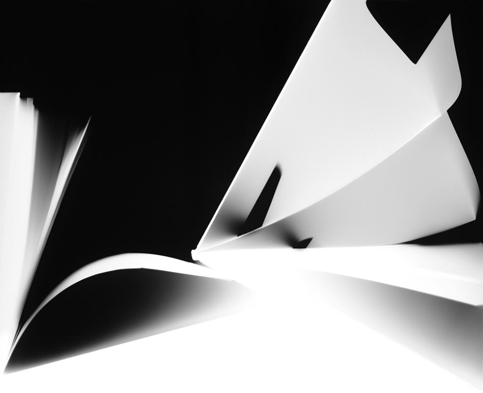 Photograms l Literary portrays a visual object whose power is the transformation of the abstract, making the physical object, now airborne, like words flying off the pages in a book, and relative to our time. These images use a visual language that metamorphose a literal and literary object, the book, into an interpretation of abstraction. As printed books are fading from our lives, being replaced by the digital medium, so is the gelatin silver photograph being replaced by our mobile phones and digital photographic technology. Selections of the series are in the permanent collection of Bibliotheque Nationale de France, France and Spallart, Austria.