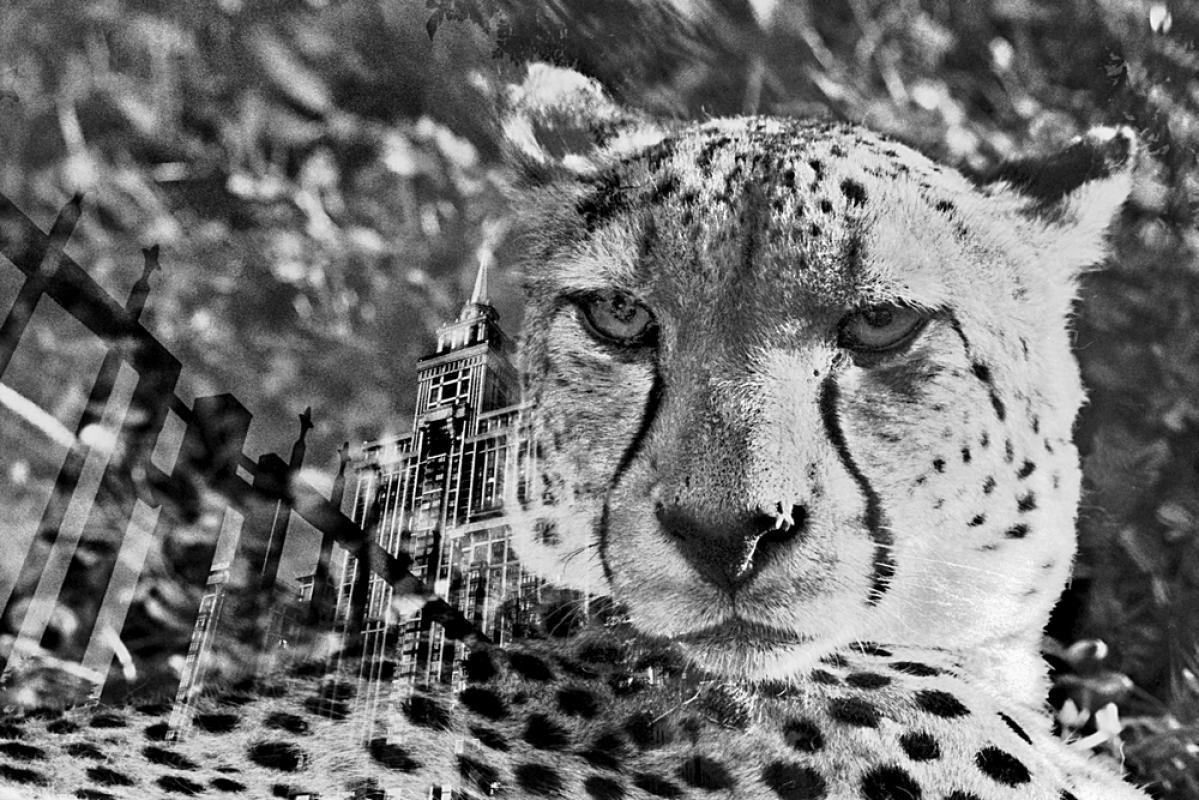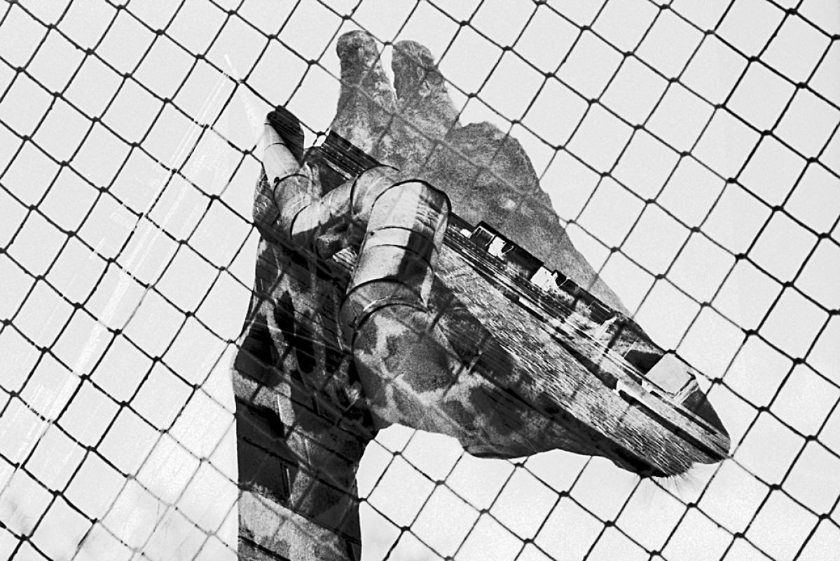 Personal photography project—self-published artist book—inspired by two novels of the famous Japanese writer, Nobel Prize Laureate Oe Kenzaburo. Edition in Russian, English, and Japanese. Zoo animals escaped from their confinement and went out to the streets. Animals are the masters of a new world order and nature reclaims its rights on the planet which has been long ago appropriated by human beings. This is not only fiction, but rather a warning and a guide for those who are ready for an enthusiastic, passionate, and often futile debate about politics, economy, environment, and demography. Ironically, instead of talking small we can slightly open every enclosure in zoos across the world. And after that—get back to the debates and idle talks waiting for a disaster to happen. Most of images are created using film and multiple exposure technique with subsequent scanning of negatives. The project—book and personal exhibition—was presented during the Photofestival “International Meetings of Photography”, Plovdiv, Bulgaria in 2017. Curators: Evgeny Berezner, Irina Chmyreva.