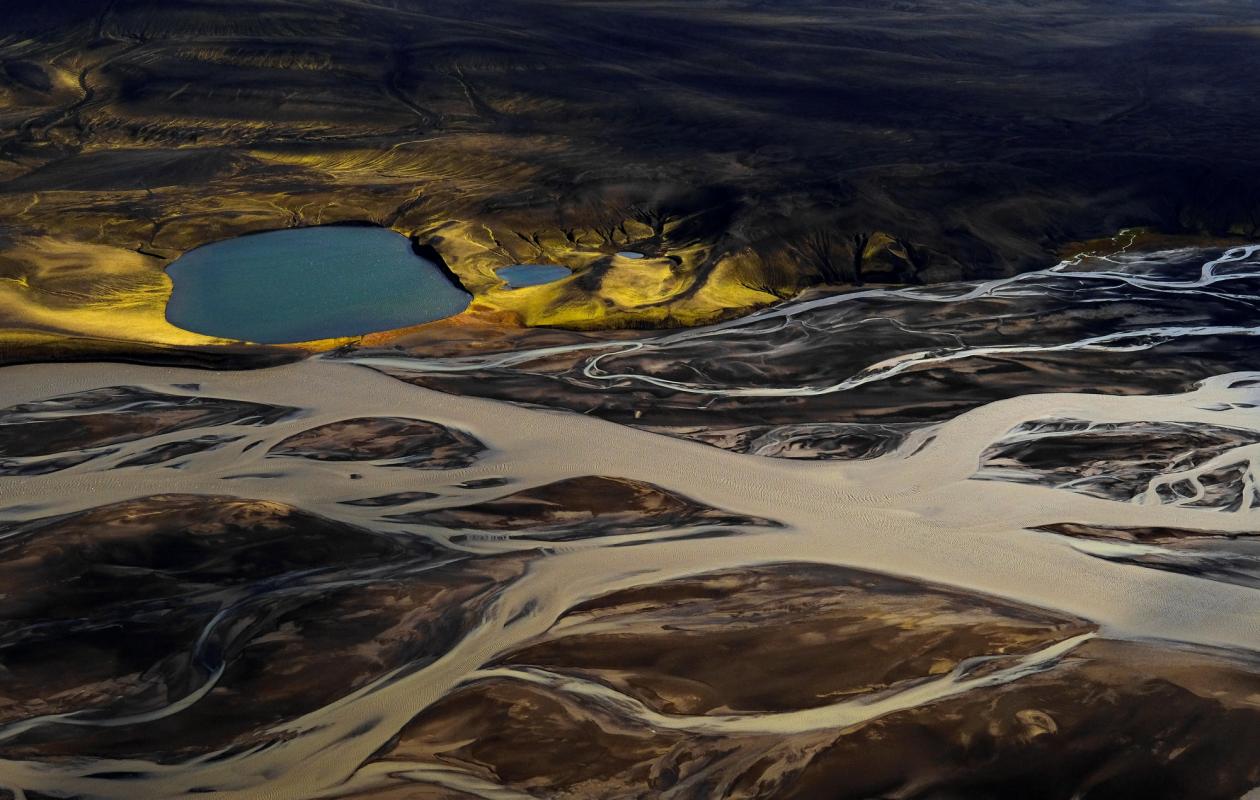 The earth, alive and pulsing with energy, as seen like never before, from the birds eye view. Aerial shots that show our living, breathing planet, veined with rivers, muscled with swirling sandstone formations, and weeping melting ice into the changing oceans.