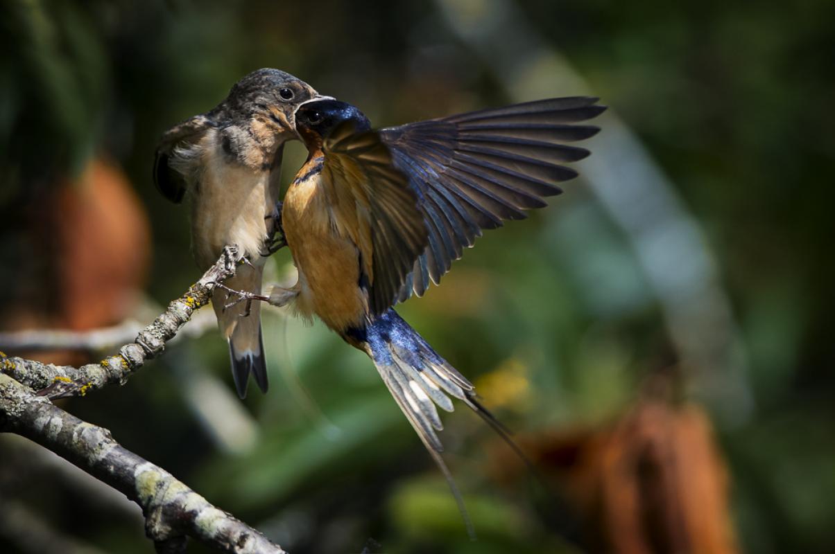 Mother Swallow feeding her young