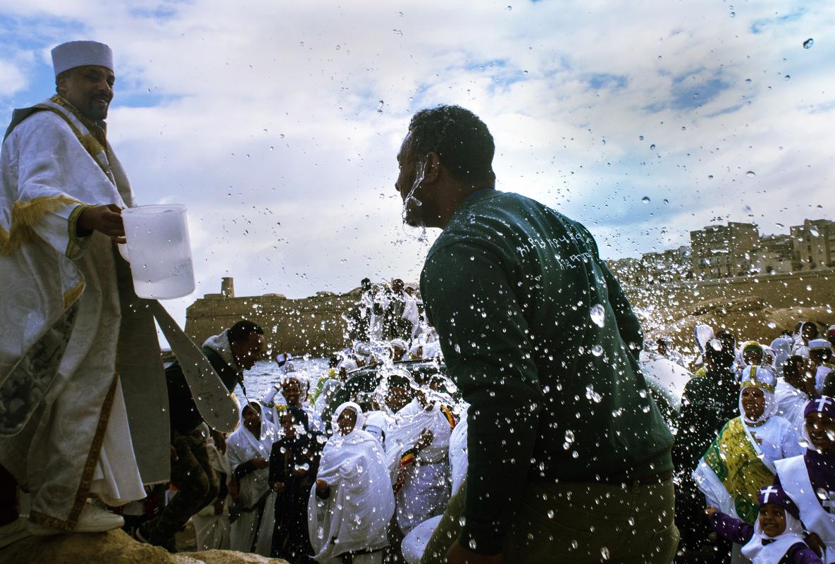 This is a photo shot during Epiphany celebration by cOPTICS WHERE PEOPLE ARE BAPTIZED.