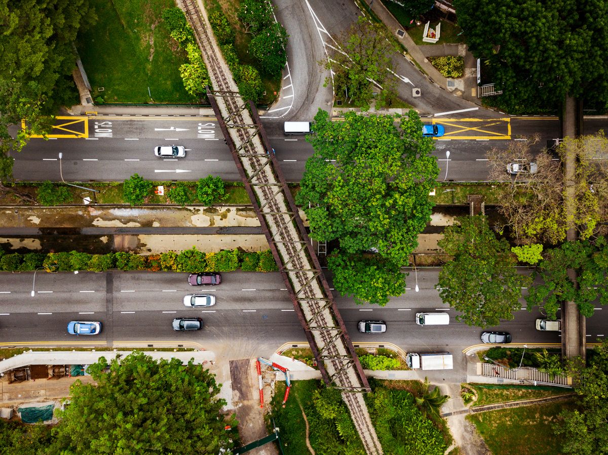 A aerial shot of the old abandoned Bukit Timah railway bridge in Singapore.