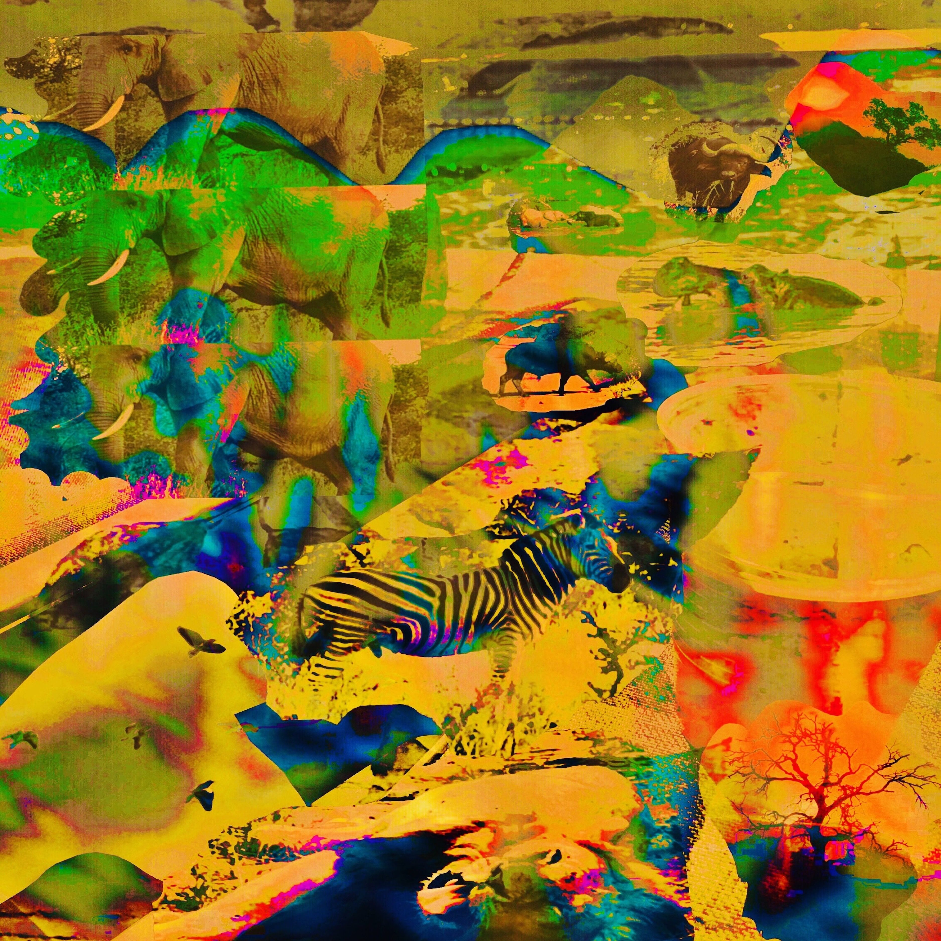 While on safari in South Africa I was inspired by the beauty and interrelatedness of nature and wildlife to create a series using my iPhoneX for capture and processing. I emerged from the experience focused on the concept of puzzles- e.g. animals in the bush as magnificent pieces that find their own ways of fitting together. From this flowed the abstracted, collaged, figurative images that comprise “Apres Safari Jigsaws”. To enhance the surreal and textural elements they are printed 40" x 40" on Moab Silver paper face-mounted on plexiglass.
