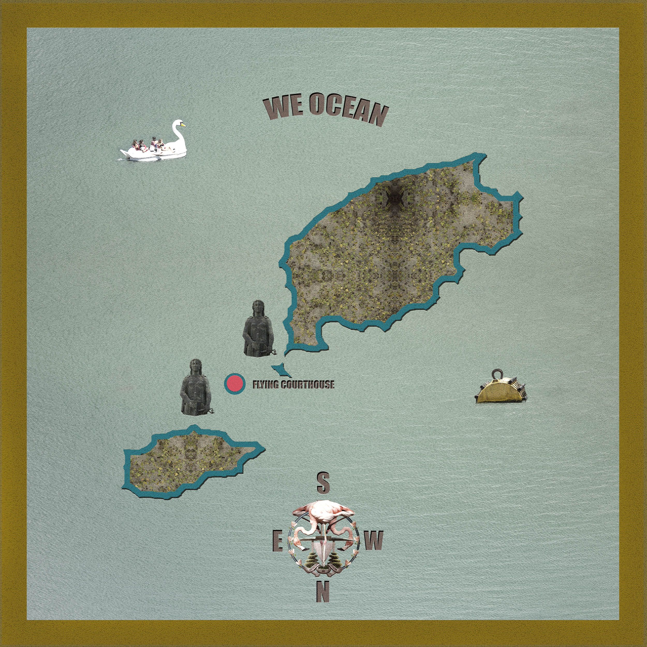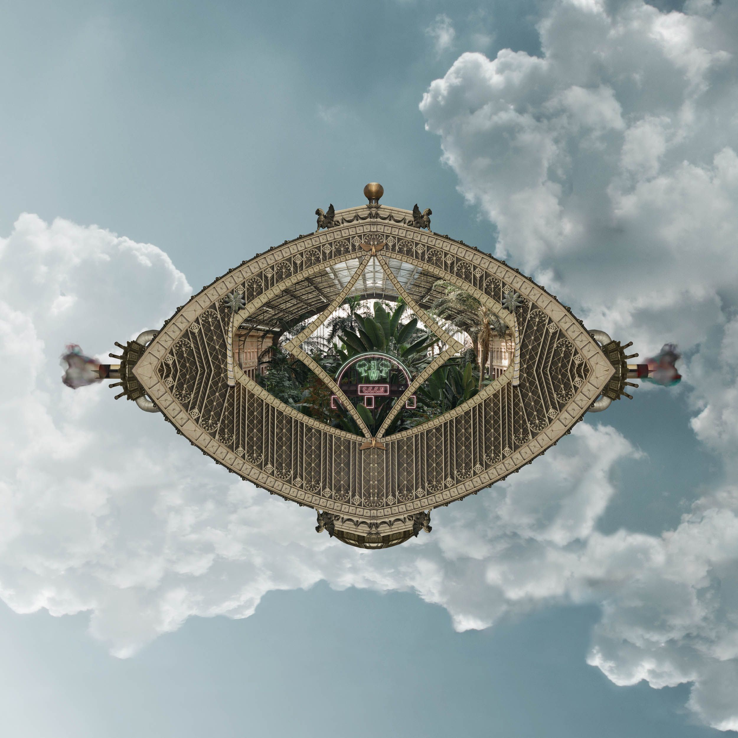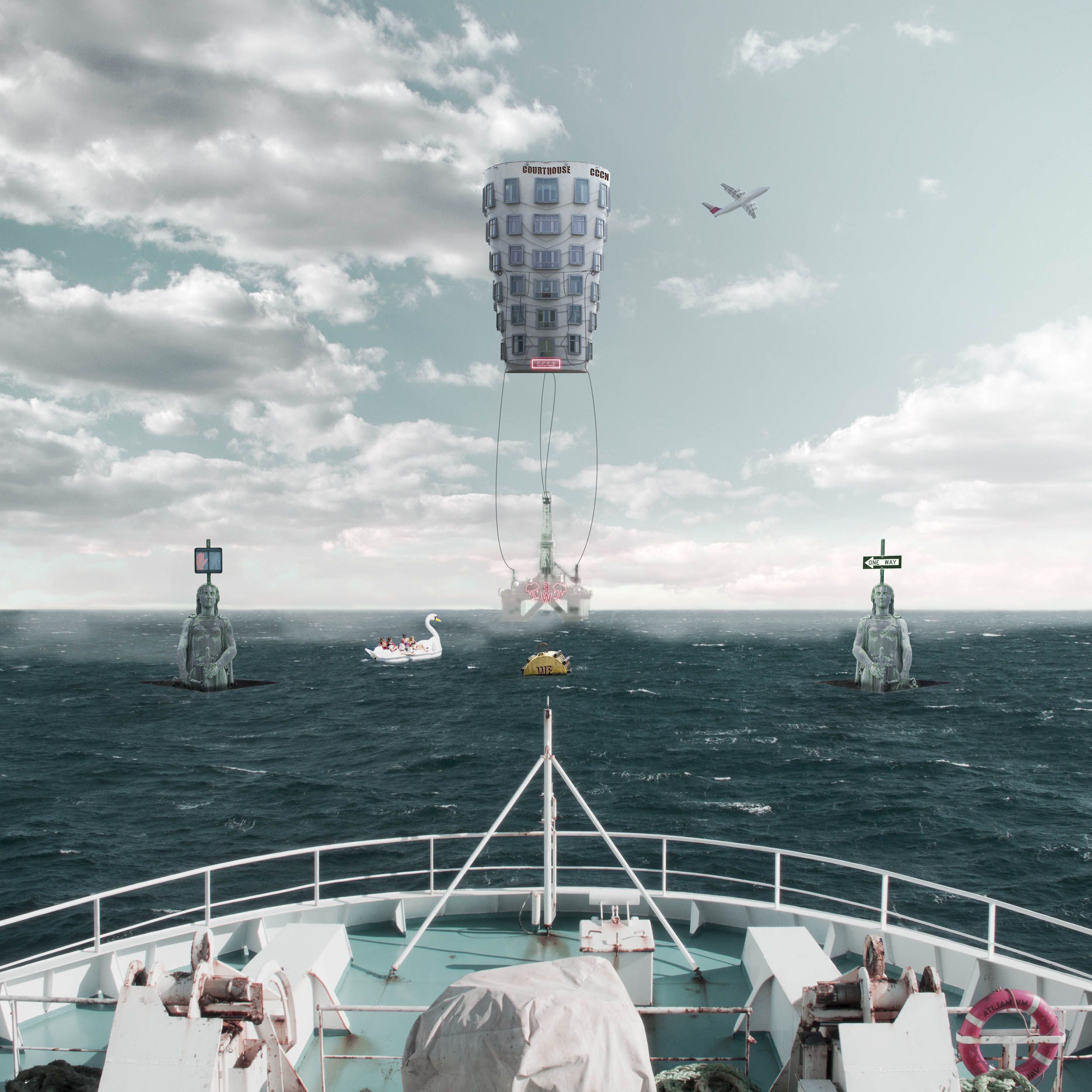 Photocollage of a NUTOPIAN society composed by a Coalition of Confederate City-states (C.C.C.N). This series is formed by three different imagined spaces part of City-states and their three locations on a map. I've drawn inspiration from novels such as Thomas More's Utopia or the dystopian We by Yevgeny Zamyatin. Also from Surrealist artists such as René Magritte, graphic artists such as Escher and architectural movements such as Archigram. My practice aims to explore the dialectical element intrinsic to the image, via the crossover of fiction and reality.