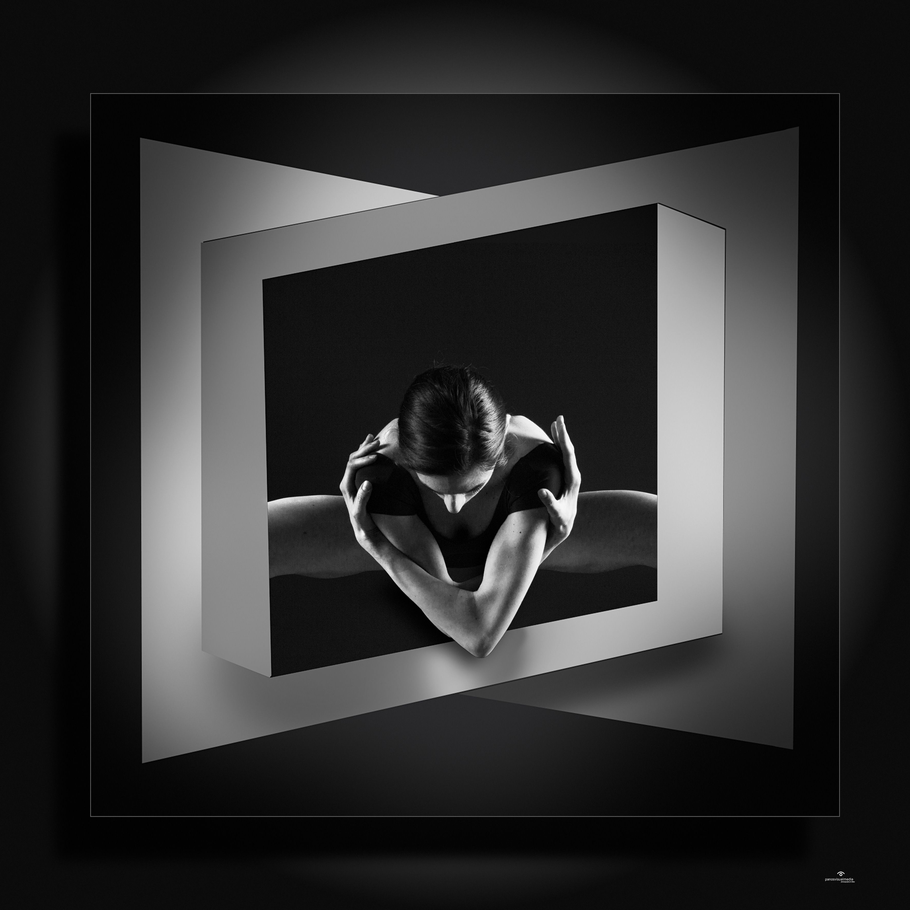 This a concept based on the works of M.S.Escher, and Reutersvärd, on "impossible " shapes. Shapes that cannot exist on a three dimensional world. The frame of this image is changing perspective depending on the way we look at the dancer in the middle.