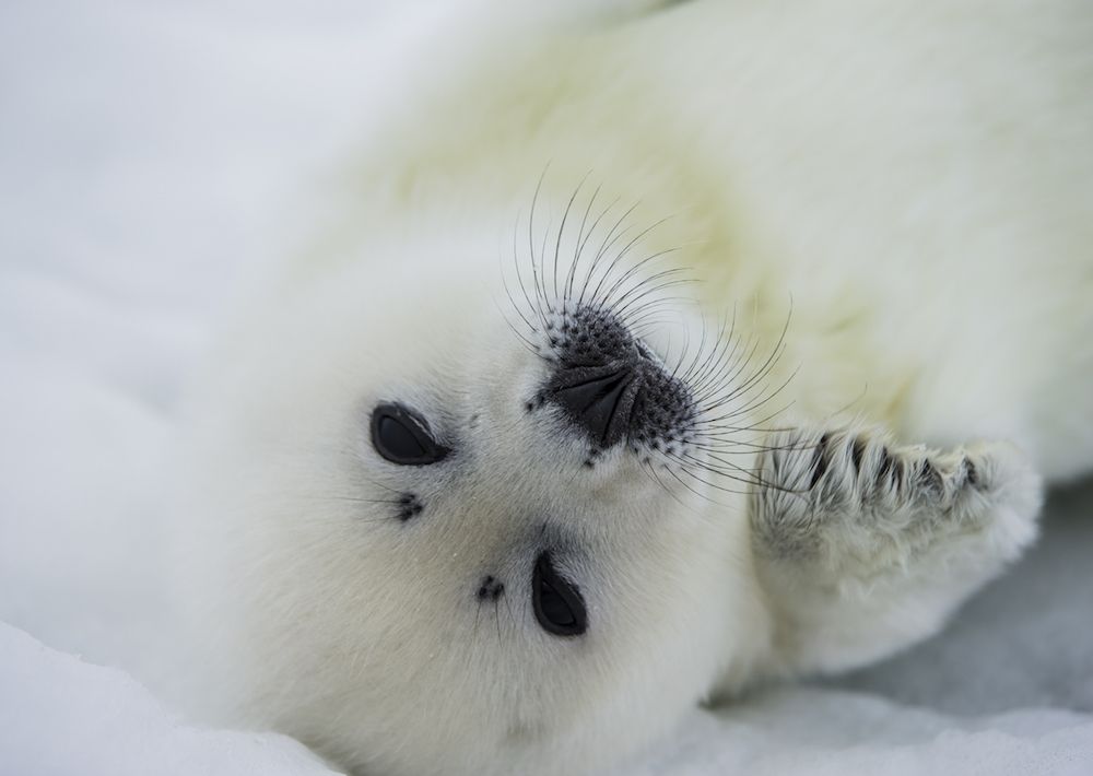 After days of locked in weather and no safe opportunity to take off in the helicopters. The skies finally cleared on day 4 with enough of a window to land on the ice floes where the harp seals were giving birth. With strictly one hour on the ice, I knew I needed to focus on one pup and I slowly scanned the horizon for my subject. With less than an hour to gain trust of the young pup as its mother would sporadically pop her head up to check on her, I respected their space and worked with my subject. I was on their time, their land, I was honoured.