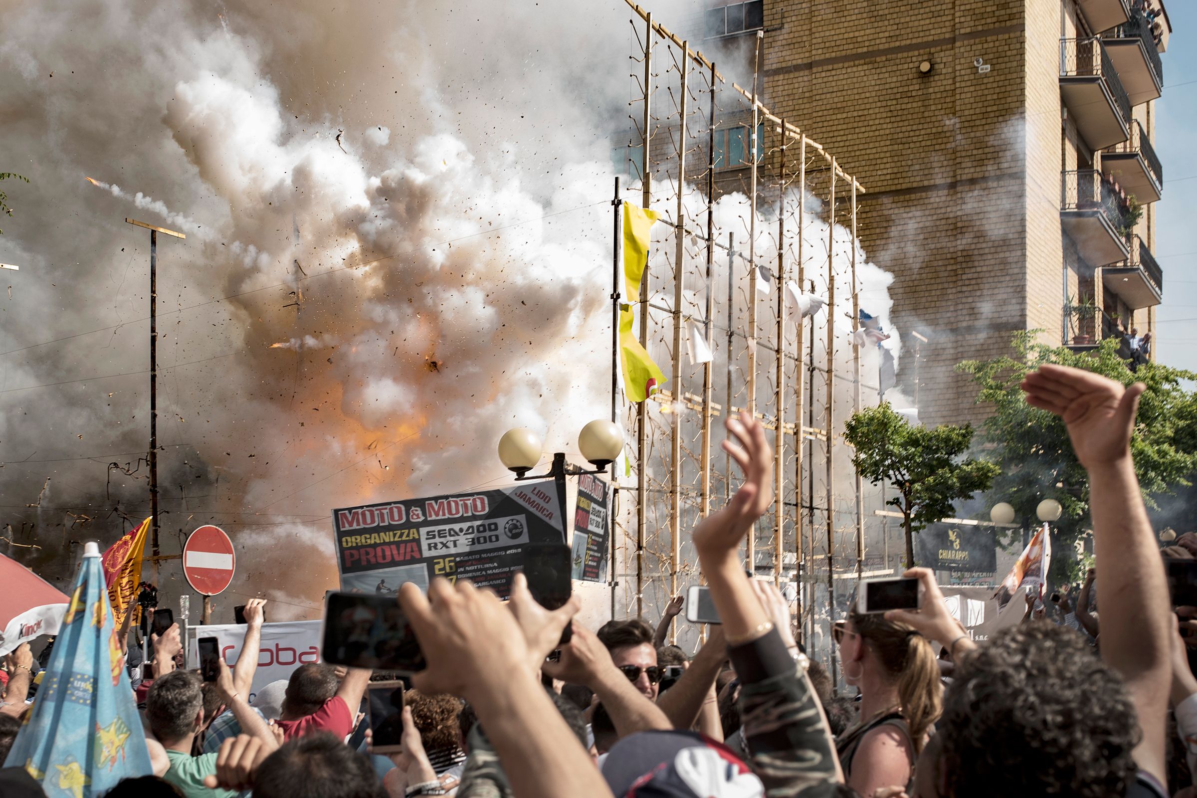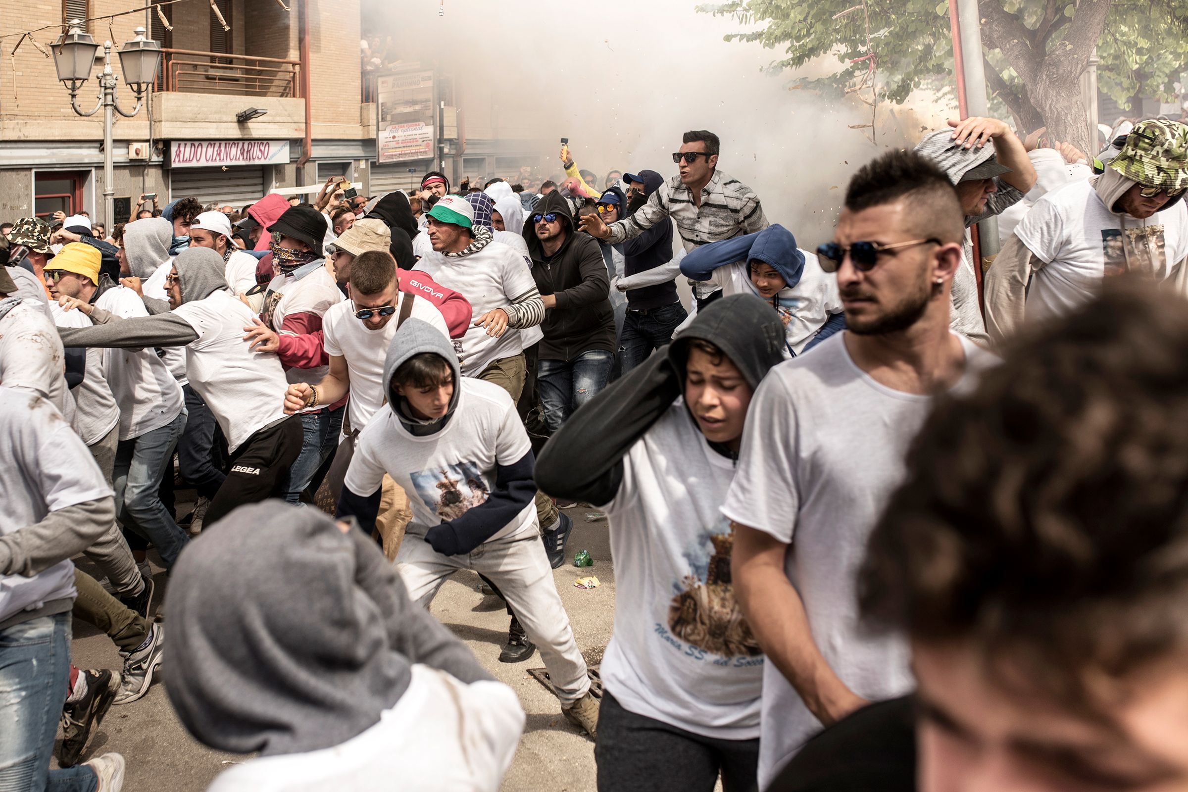 Sulfur, faith, breathtaking escapes. San Severo, Italy. Every year on the streets of the city, explosions blend prayers to the “Festa del Soccorso”. The "fujenti" (this is their traditional name) run under kilometers of typical fireworks and firecrackers. On every neighborhood Hail Mary and deflagrations merge the Processions in honor of the Virgin Mary, protector of the city. Unfortunately, that of 2018 could have been the last characteristic escape of the "fujenti", as a result of the more and more urgent laws on the safety, this secular tradition of South Italy risks disappearing forever.