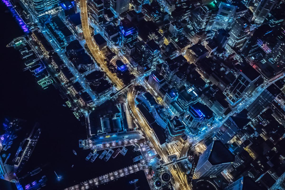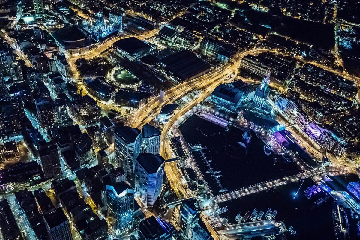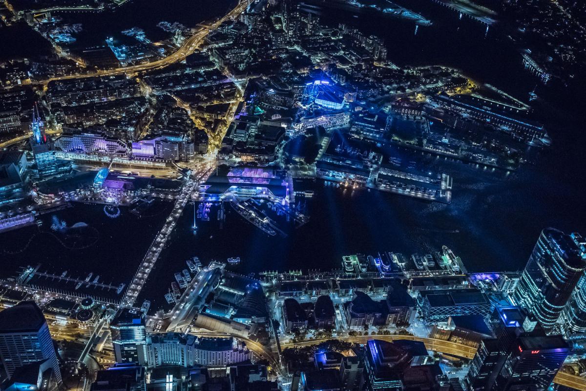 Shot from a helicopter during this year's Vivid Sydney Festival