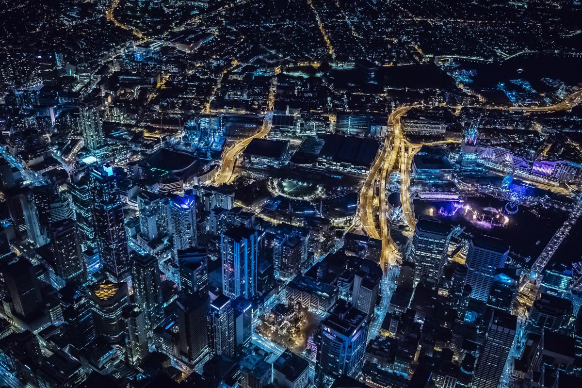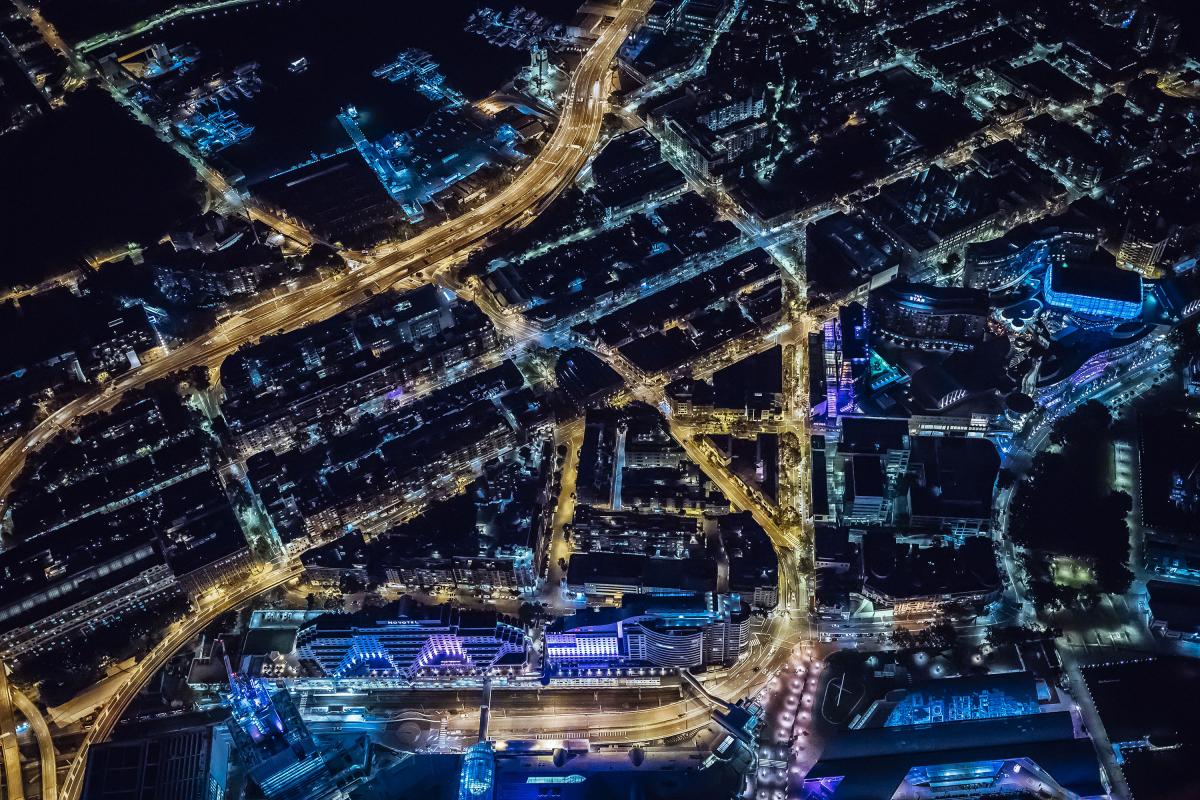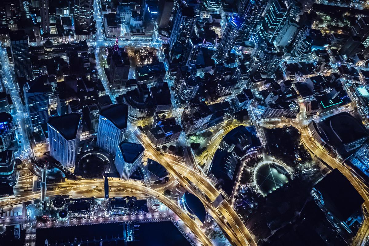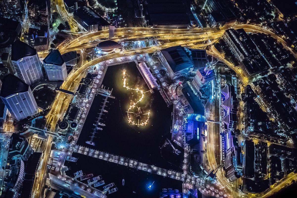 Shot from a helicopter during this year's Vivid Sydney Festival