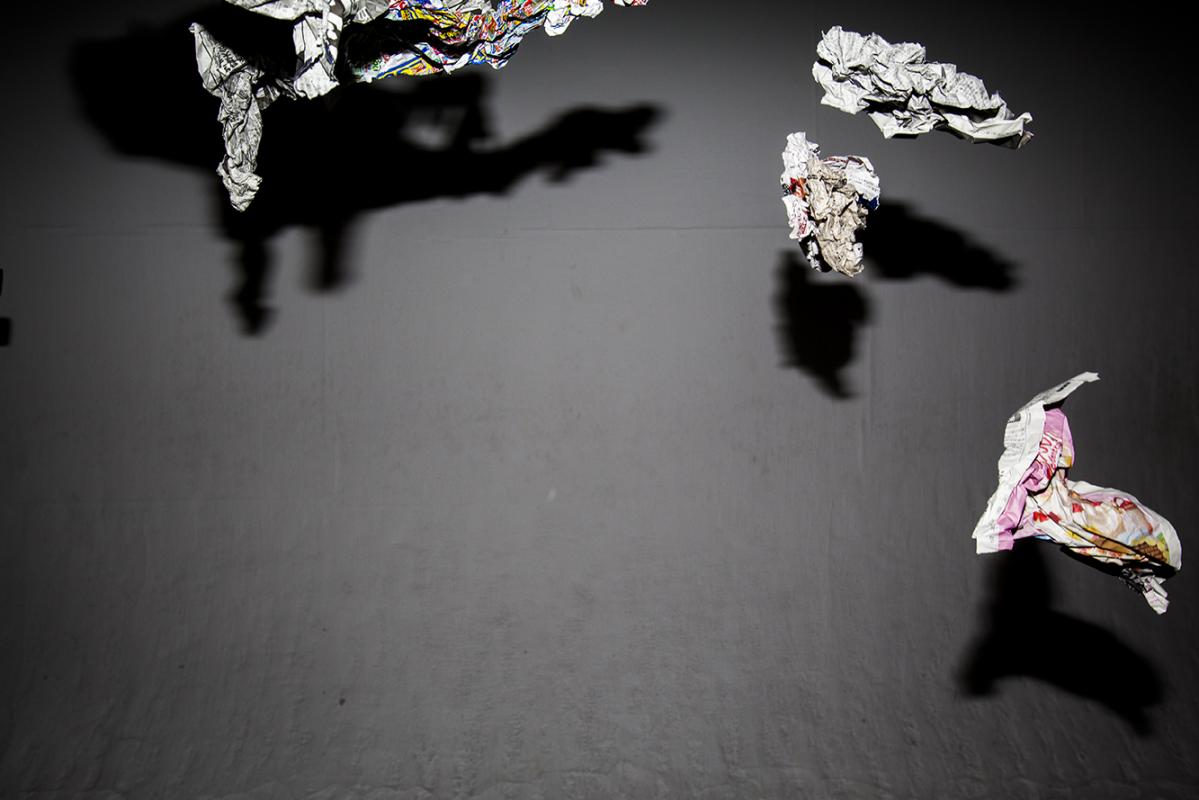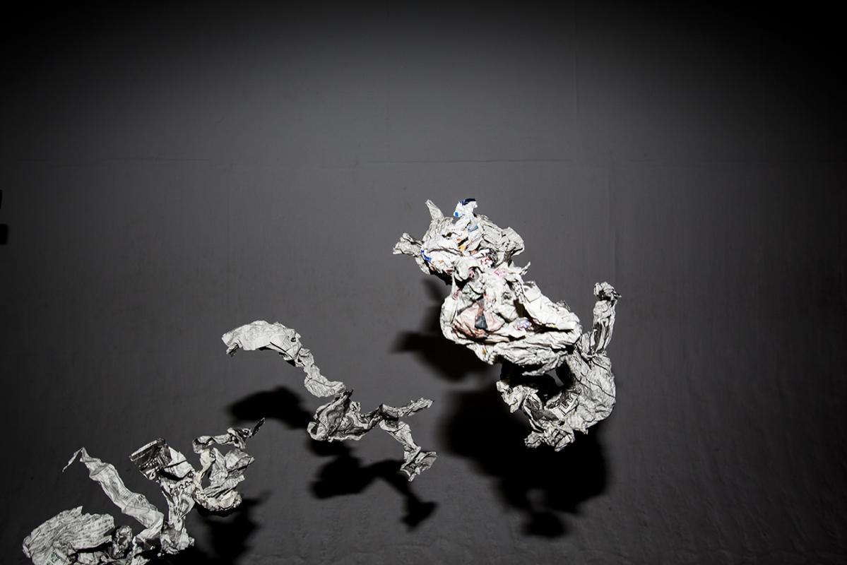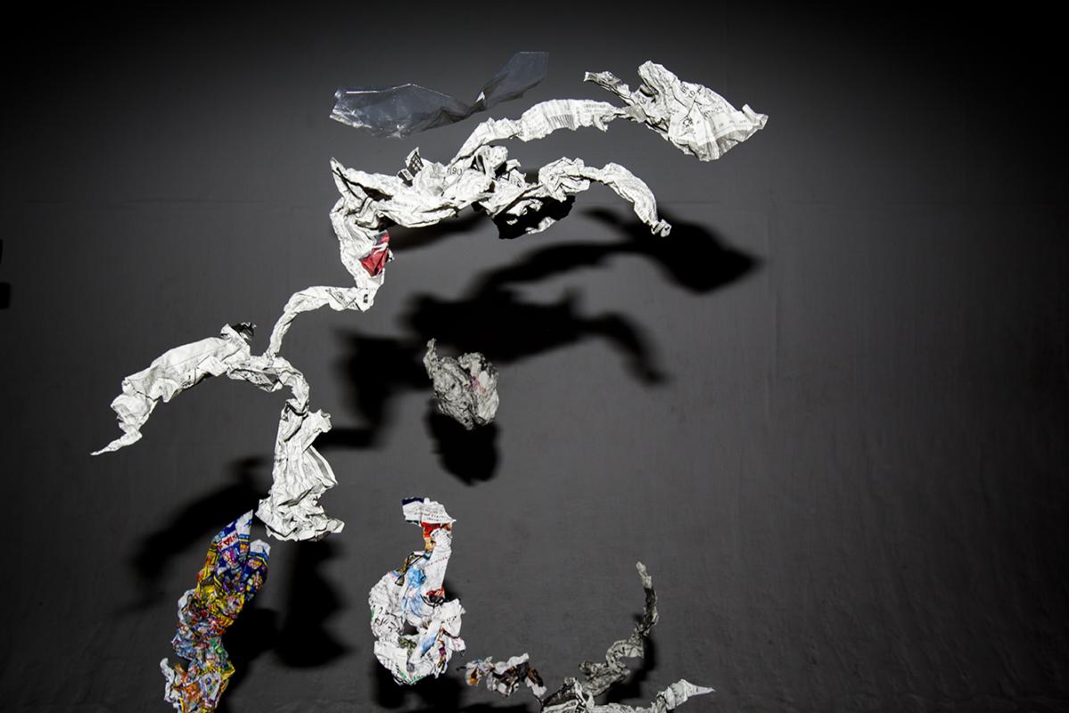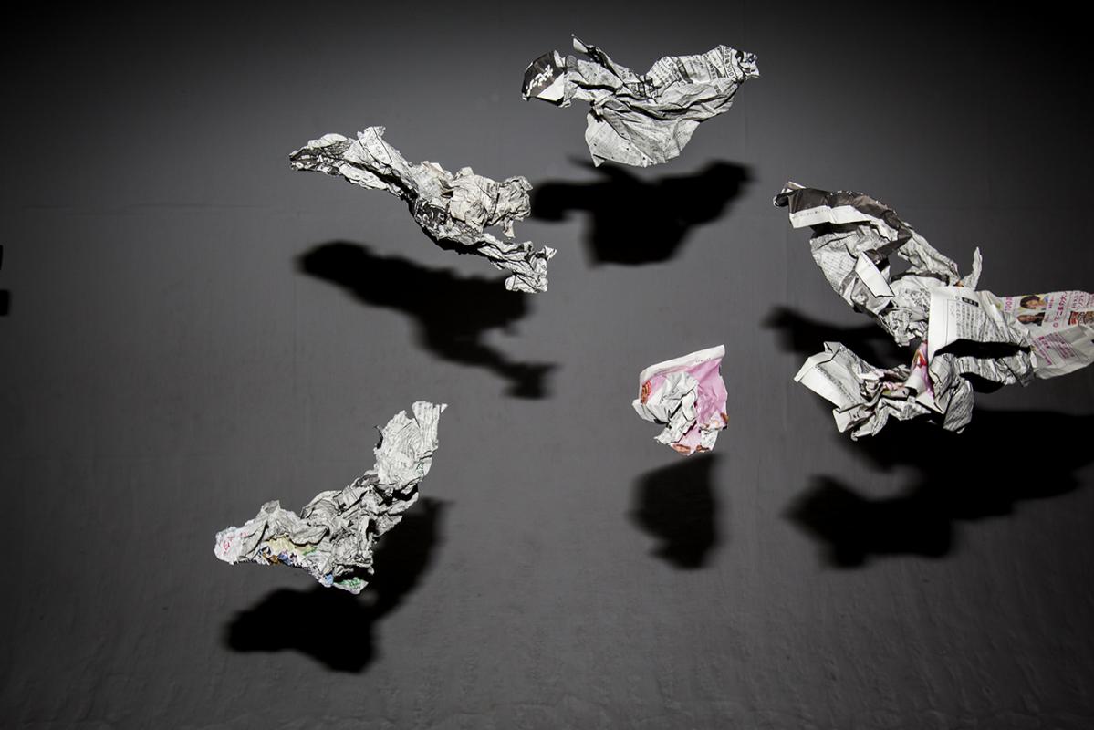 I threw the wastepaper to top. Then wastepaper looks like an animals. I took art of moment.