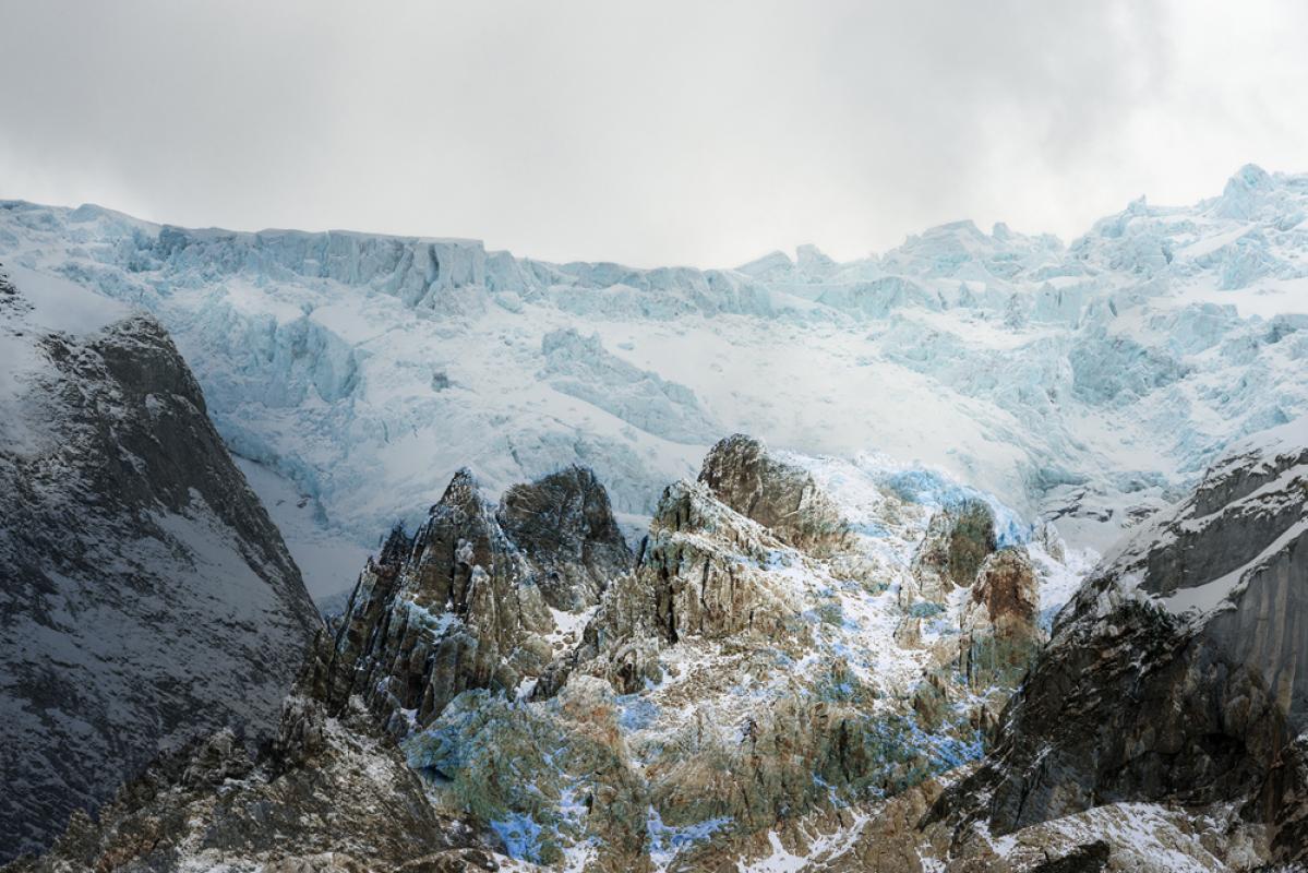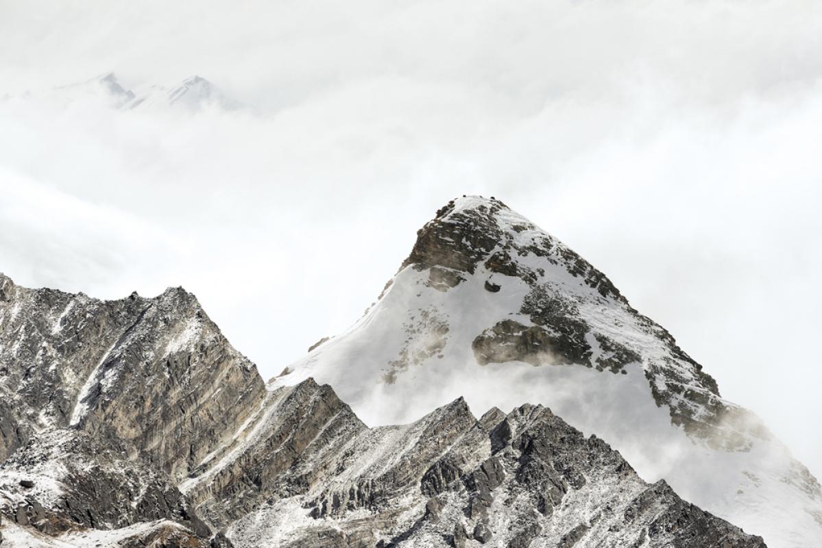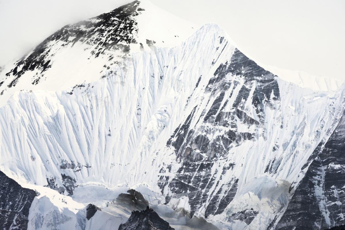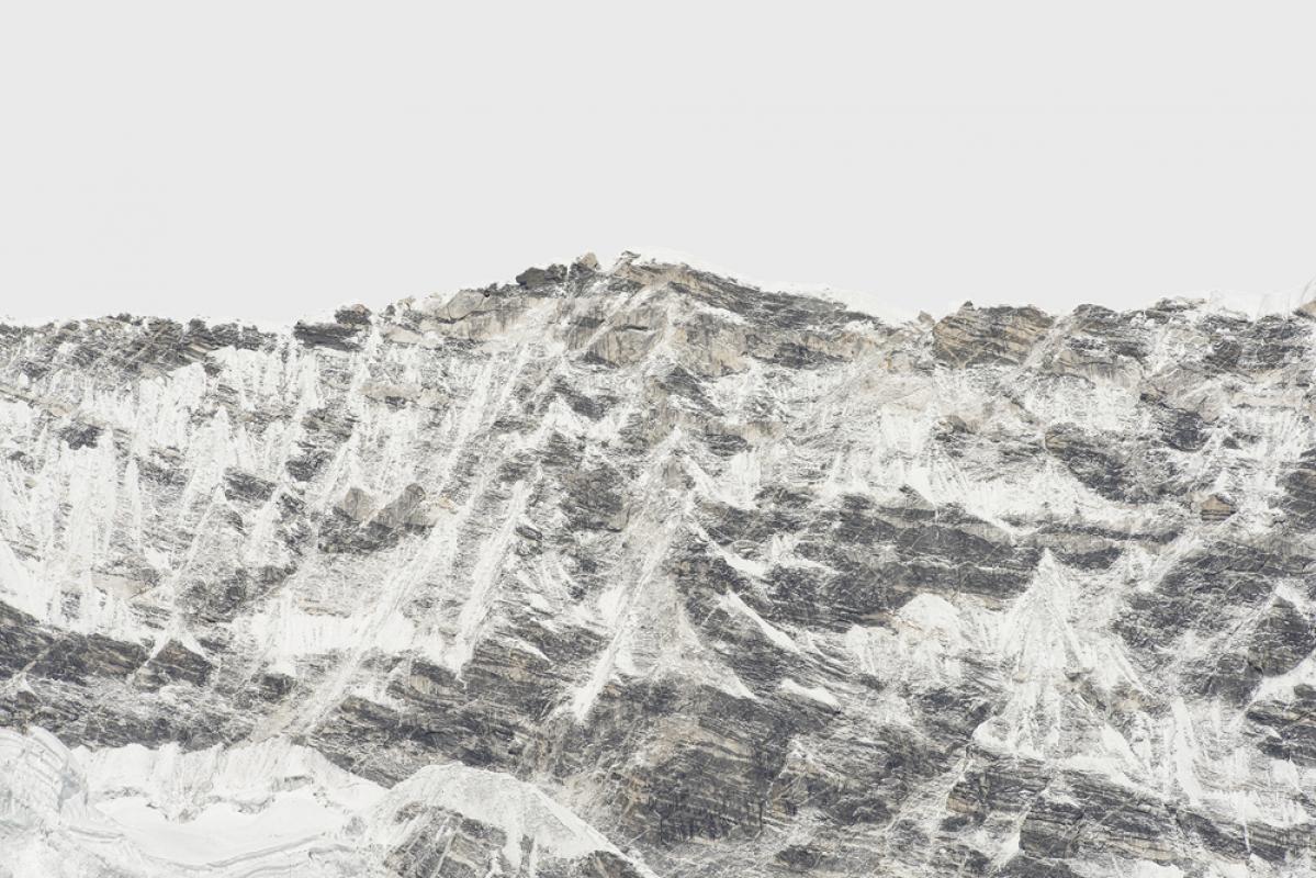 The latest project from New York based photographer Renate Aller includes mountain peaks from six continents. These photographs were taken from locations as high as 22.500 feet (adjacent to Mount Everest) to the European glaciers and mountain peaks of her childhood vacations. The subject matter is monumental, yet the images connect the viewer in a way that is not overpowering. Similar to the sand dune images from Ocean | Desert, the artist engages us with these giants in all their detail, the veins and textures of the rocks in their constantly transient state. Aller isolates the mountain from its expected surroundings, using and presenting the familiar and the known in an intimate way, relating to parallel realities from different locations, opening up conversations between the different (political) landscapes in which we live.