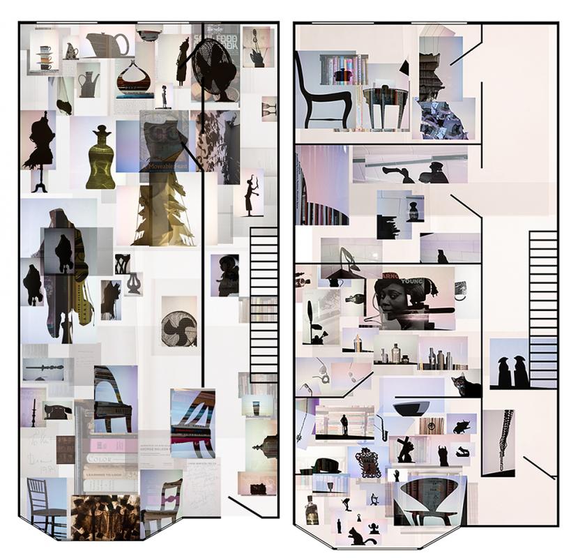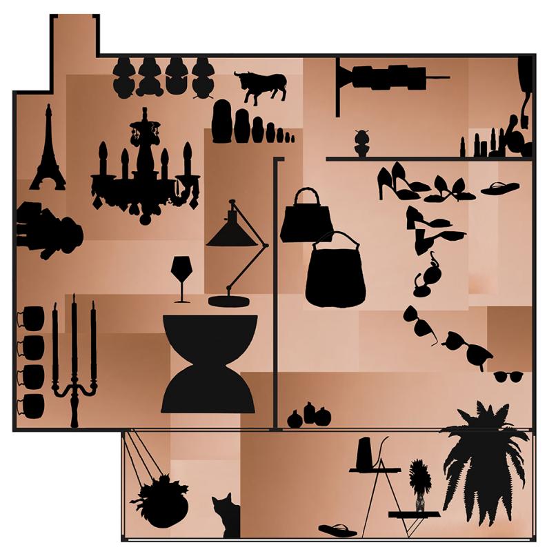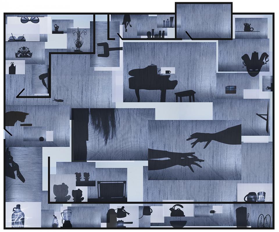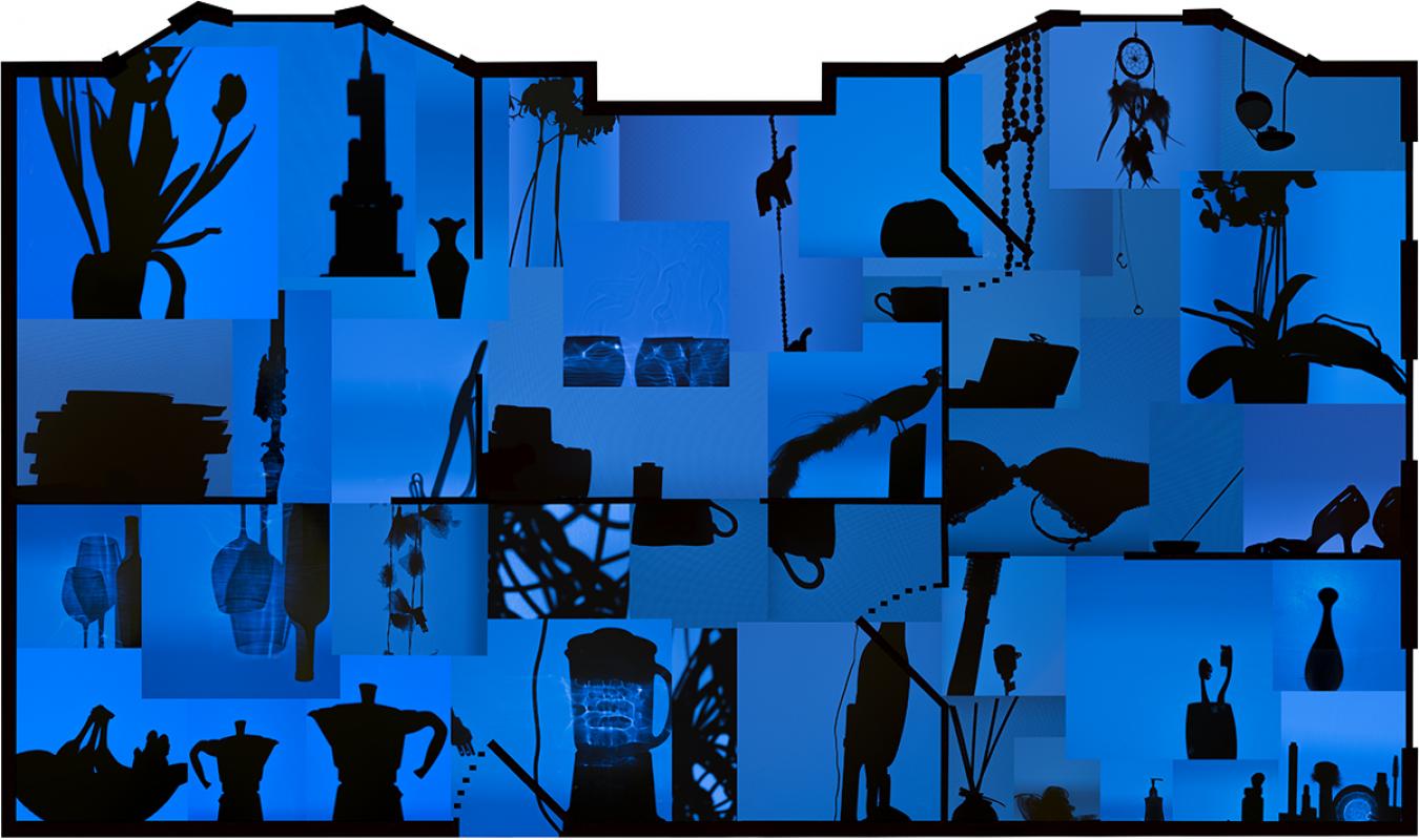 A silent piano, high heels in the walking-in closet, faded dead flowers still releasing a sweet smell, toys fighting each other in the basement, incense, lace and Saints. My series Blueprints gravitate towards the notion that our home is the reflection of ourselves. Instead of conventional photographic portraiture, I reveal the personalities of my subjects by depicting the contents of their homes. Like a mirror, a home reflects the identity of their inhabitants. The way the content of a house is arranged reveals, in a whisper, whether the person is organized, chaotic, romantic, divorced; everything I imagine to know. I enter. I pick objects. I remove them from their places. I place them in front of a light source. I create a new object. I put the object back. The shadow is gone. The final images resemble architectural floor plans; however, Blueprints are in fact an unusual form of portrait. While these portraits do not depict my subject’s faces, hands, or likenesses, they are a reflection of each person, a reverse projection, a negative of the original. It is like reading their biography, but from the outside in.