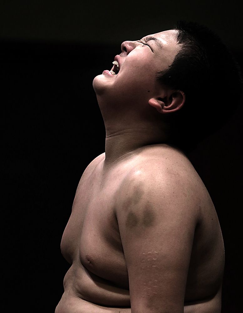 Japanese traditional culture sumo. It is a piece of photograph that shows that she is full of mud aiming at the yokozuna from a young age and is desperate enough to withstand a serious thought.