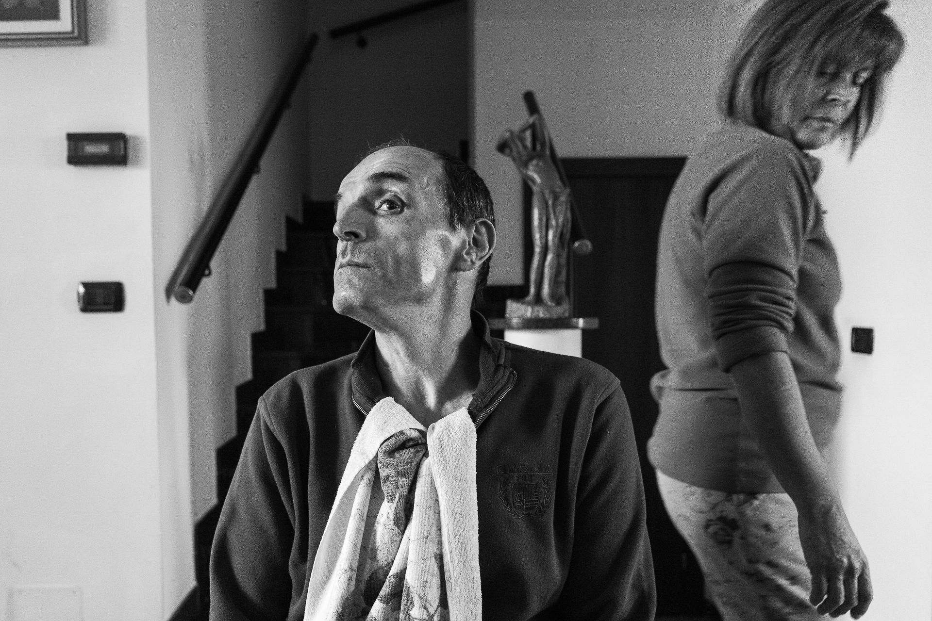 Alessandro is a 47 year old man who is autistic, deaf-mute and self-and-hetero aggressive. His typical day is filled by rituals that are repeated always in the same and impenetrable way, surrounded by silence and love of his Family: his mother, his younger sister Virginia and her husband. After spending one and half year with Alessandro and his family, in his daily life, I’ve been able to produce a set of images with the purpose of depicting a snapshot of his life filled with difficulties but full of love from his family, hoping to clarify what it means to live autism on a day by day basis.