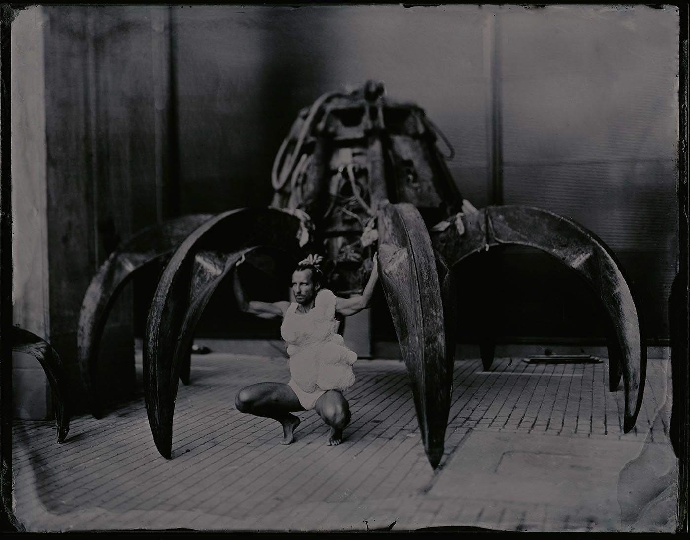 Ambototype was made in the wet collodion technique on glass using by large format camera Mentor Panorama dimensions 18cmx24cm. Model: Dawid Hemke, Costume: Charlie Minston, Hair: Aleksandra Dubiel,