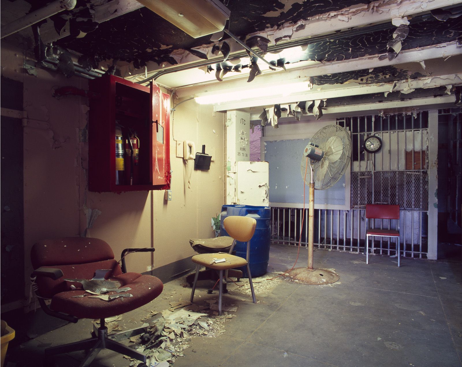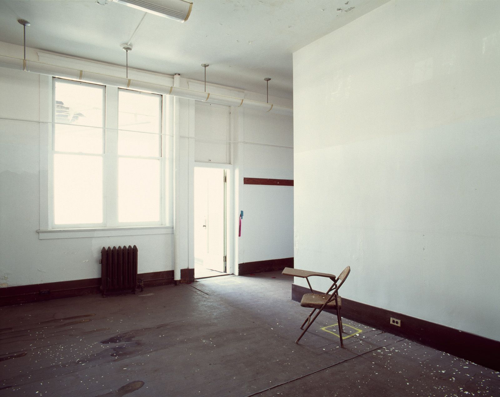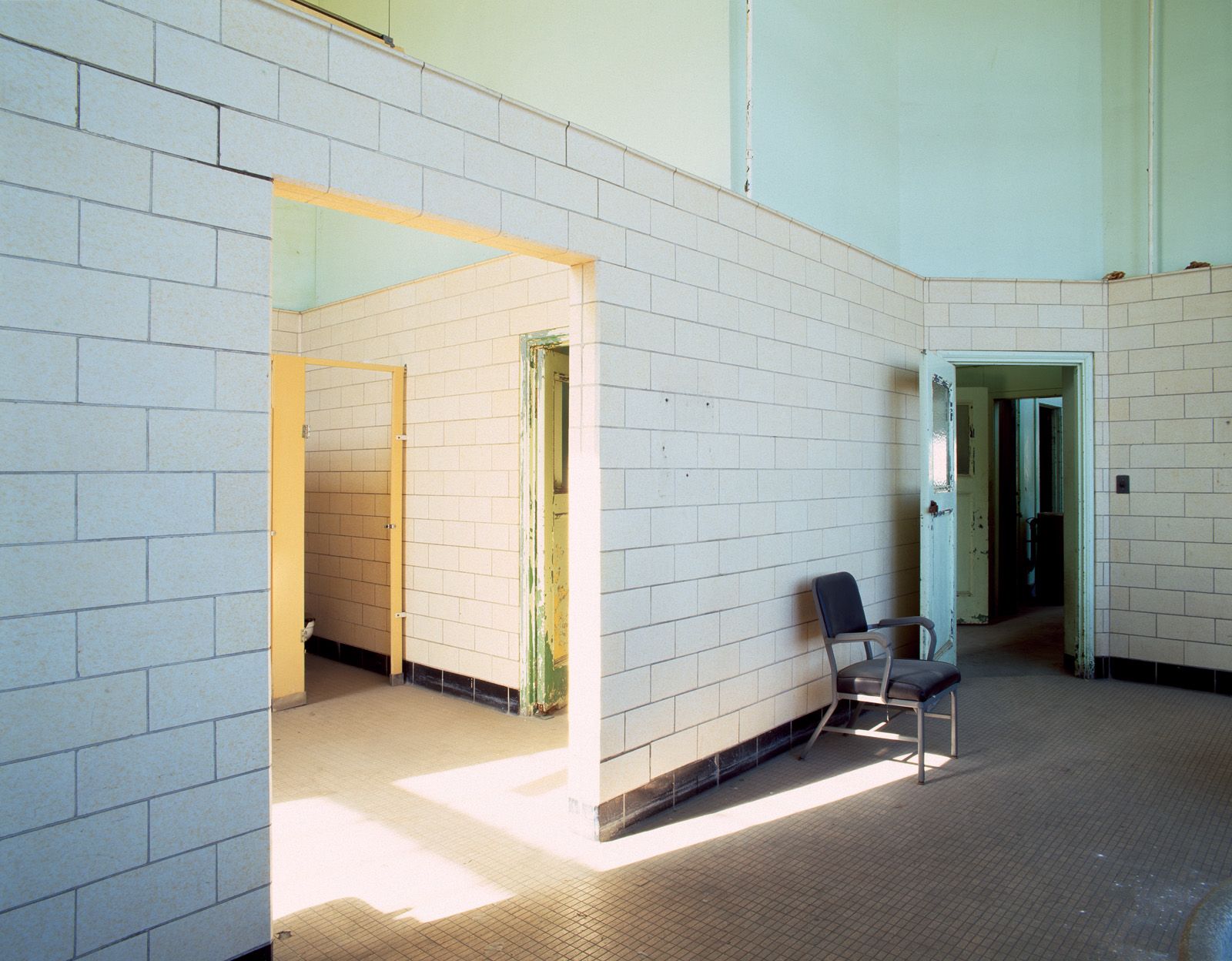 Over time I began to notice that there were solitary chairs, groups of chairs, or other seating in many if not all of the closed or abandoned mines, mills, prisons, shipyards, hospitals, and other sites I was photographing. They always seemed artfully set up, often by windows, often in beautiful light. It is easy to imagine an individual sitting in the light, or a group meeting. All of these images were made as part of other projects, all were shot as found.