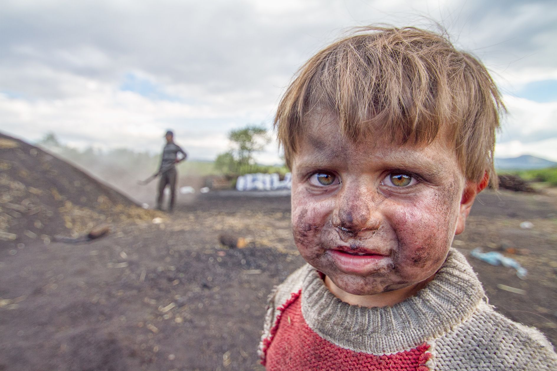 A child making charcoal