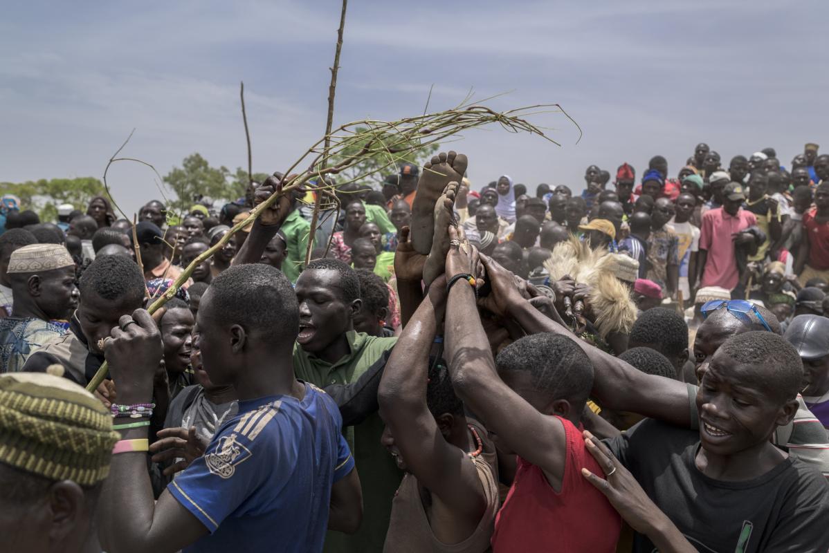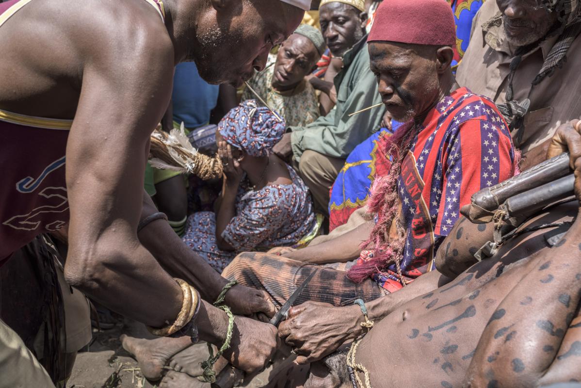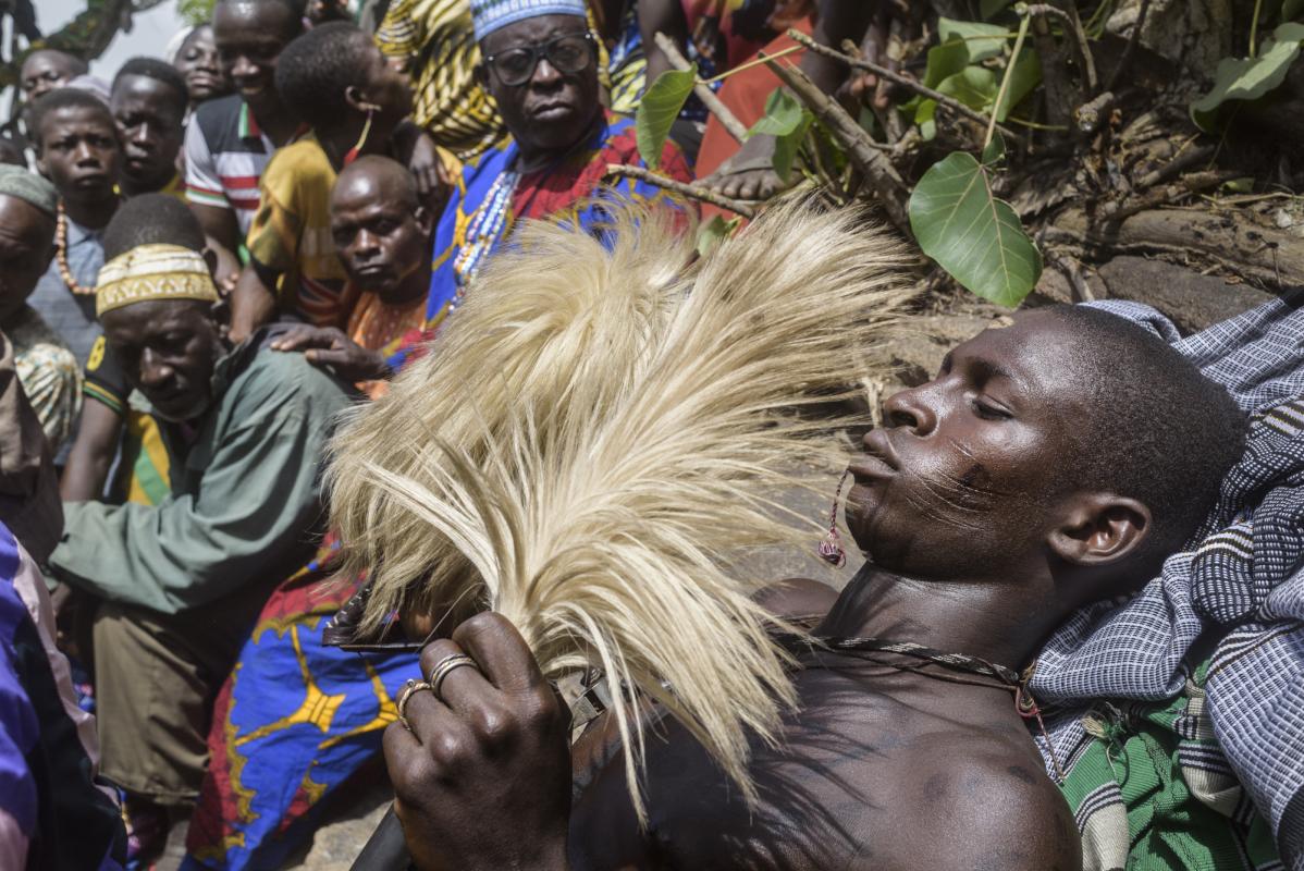 This photographic series tells the story of a ceremony held every four or five years (depending on the elders criteria) at the village of Yaka in the North of Benin. When the time has come every male around his twenties belonging to the Yom tribe has to be circumcised in a big ceremony held in the village in front of everyone. Being circumcised means that the boy becomes a man in full right within the community. In the rare event that any of the boys would refuse to get circumcised this would mean shame for him and probably for his family too.