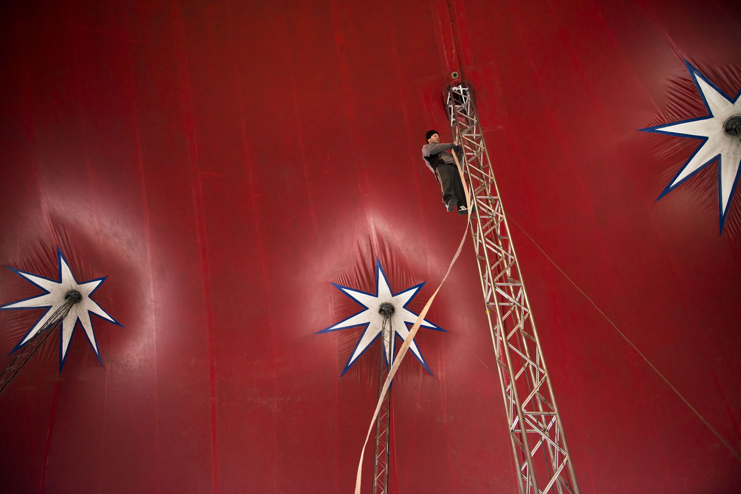 In these photographs you gain a glimpse into the quirky life of a travelling circus, from preparations backstage, through the show. Circus skills and traditions are passed down from generation to generation, and family life revolves around the circus. Most of the adults have been a part of the show since childhood, having been born on site at the circus.