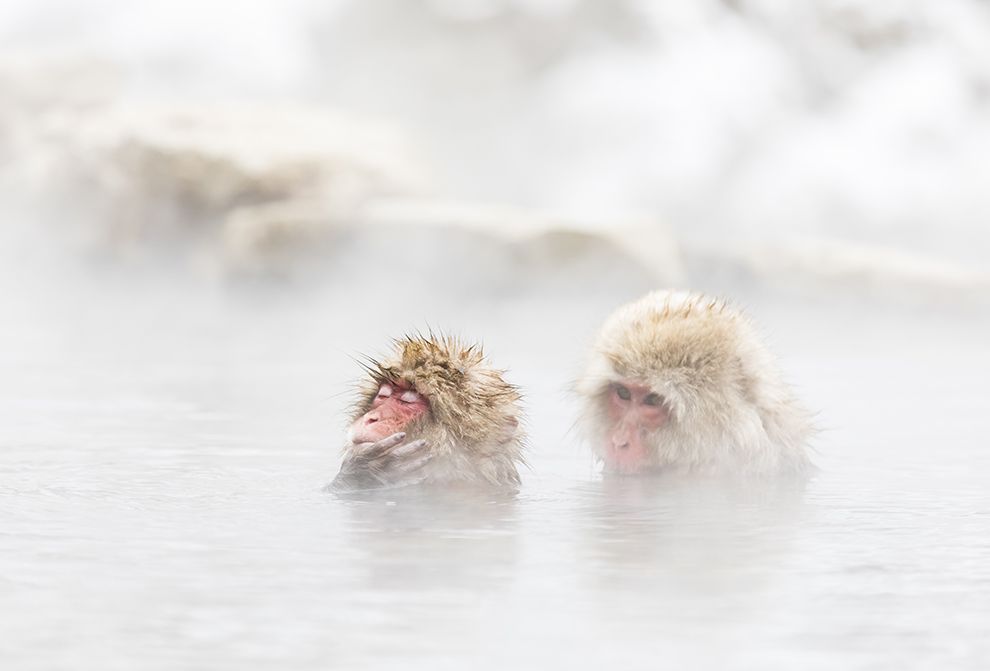 Feels good.It is a monkey who enters a hot spring in Japan.