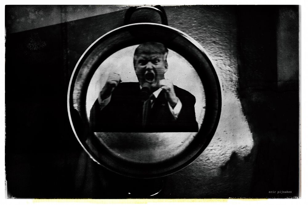 Eight meditations on Donald Trump, critized by 27 psychiatrists who state that "Trump's mental state presents a clear and present danger to our nation, the world and individual well-being". This series of a 8 photographs / collage is ment as a poetic approach to the inner life of the president of the USA. Enter it with your own fantasy and imagination.