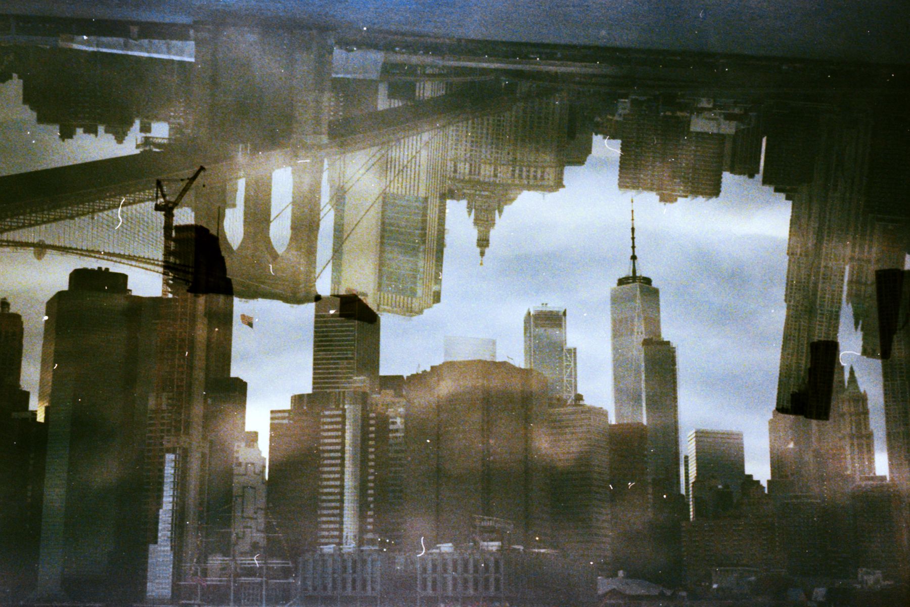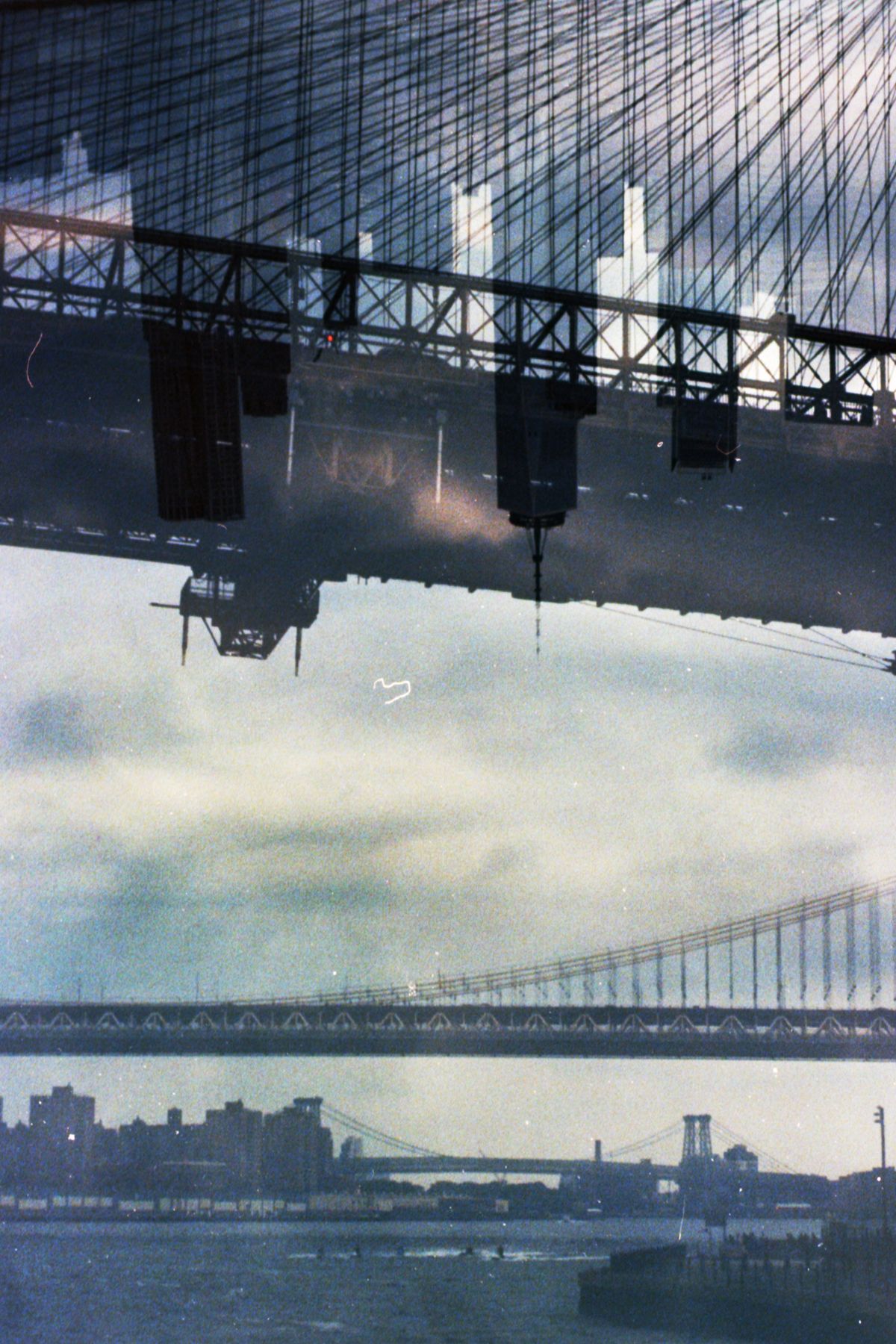 New York and Brooklyn double exposed for a new perspective. Using the Argus C3 Matchmatic, I'm experimenting with nature using double or triple exposures onto one frame. After I develop the images with Cinestill, I scan them in with an Epson V600. The frames are muted and the colors are dull. Using Photoshop, I dodge and burn throughout the image and find the right color palette for the frame. When I first open a file I'm lost, but as I agitate the curves, my brain clicks with the image and I go for it. At the end, I am dumbfounded. Most frames take 30-50 minutes to edit.