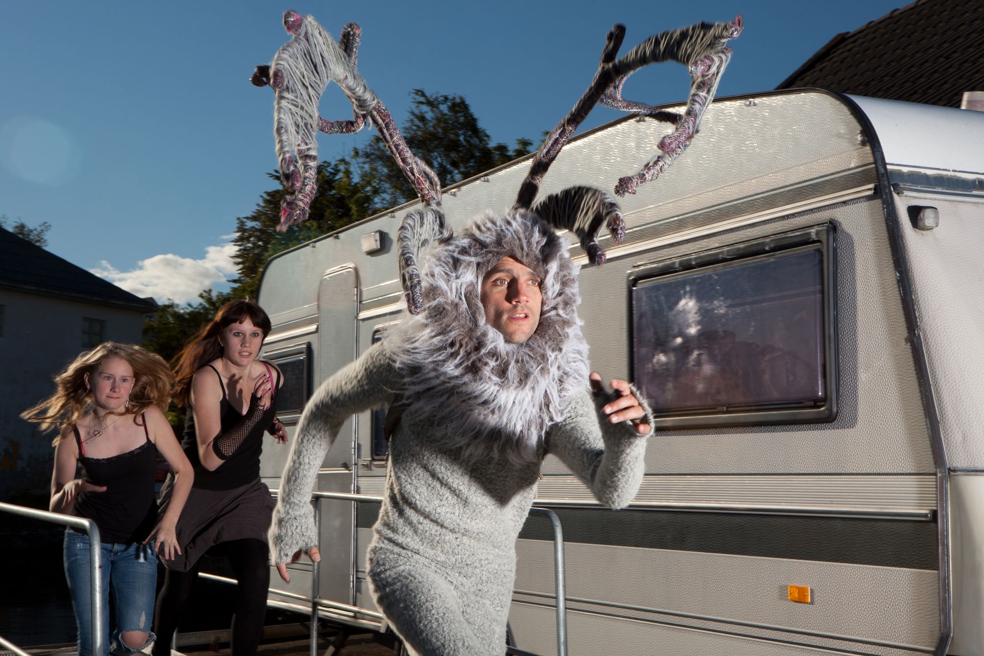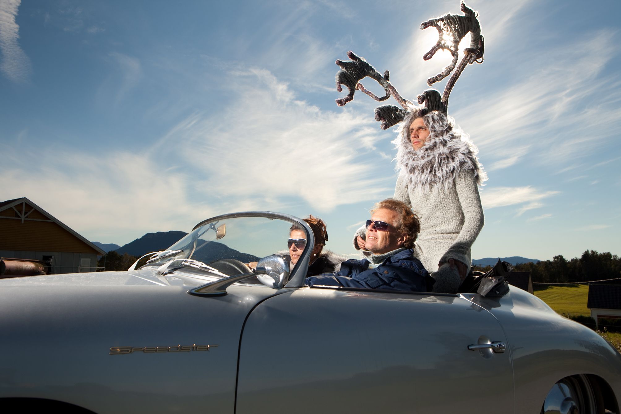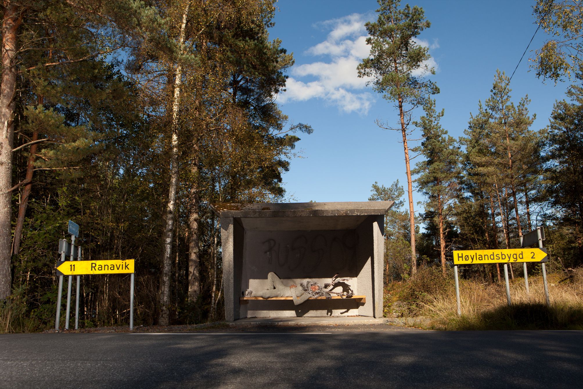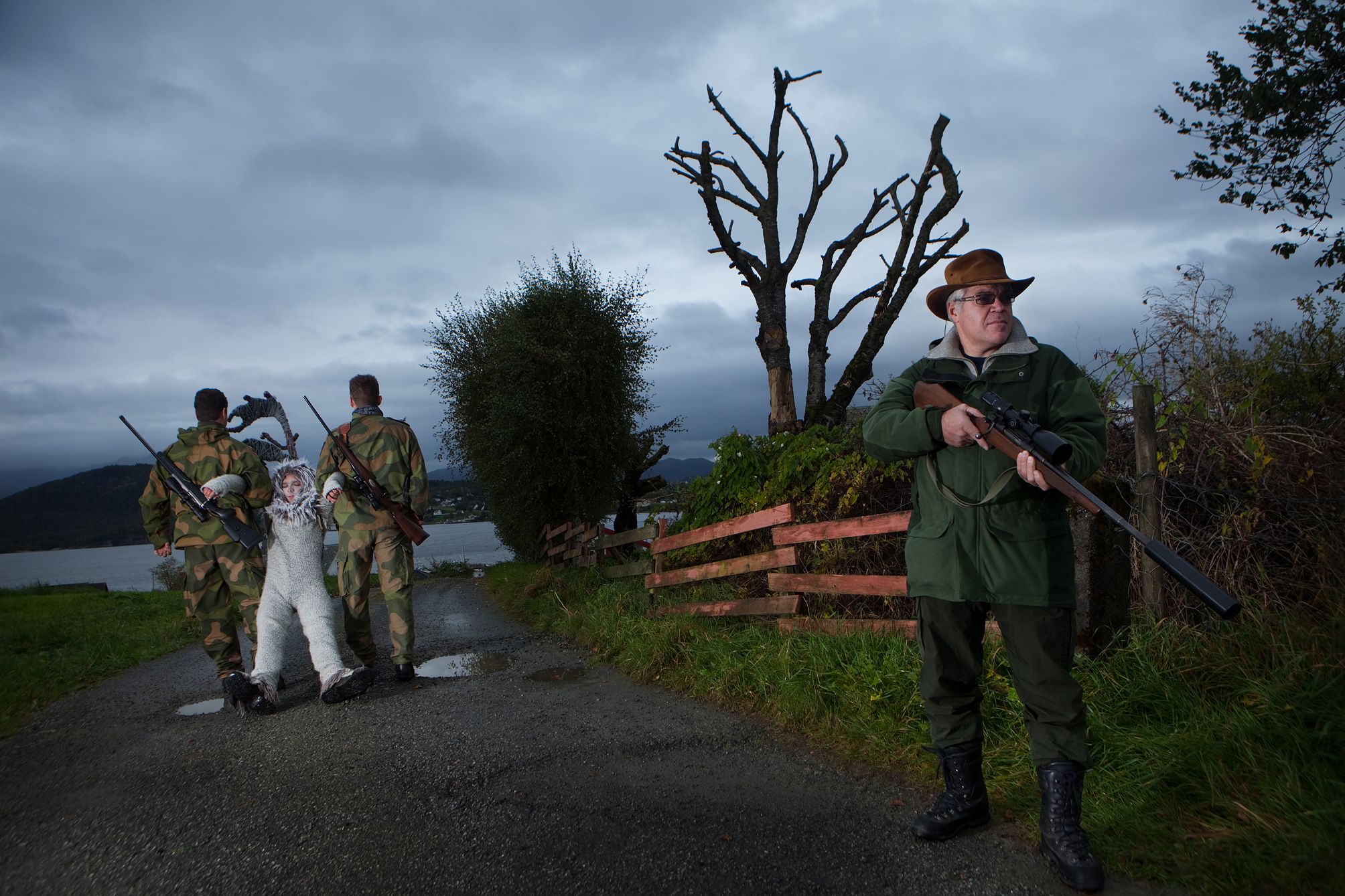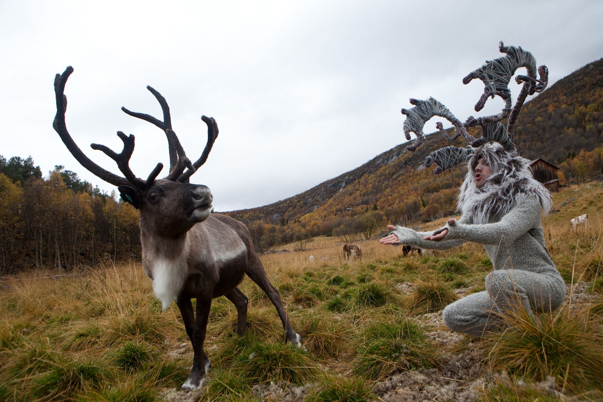 This series takes the form of road movie. Reindeer-Man’s search for his identity is the impulse that drives him to take to the road. The action takes place in Norway. Through his adventures we explore a social landscape. The narrative opens space for fantasy. It's a real expedition where unknown people stop their daily activities to help create a fable. With cinematographic touch my subjects become actors, landscapes are sets and an intriguing surrealism shapes documentary into a strange fiction. The introduction of a fiction character makes real life shine with strangeness.