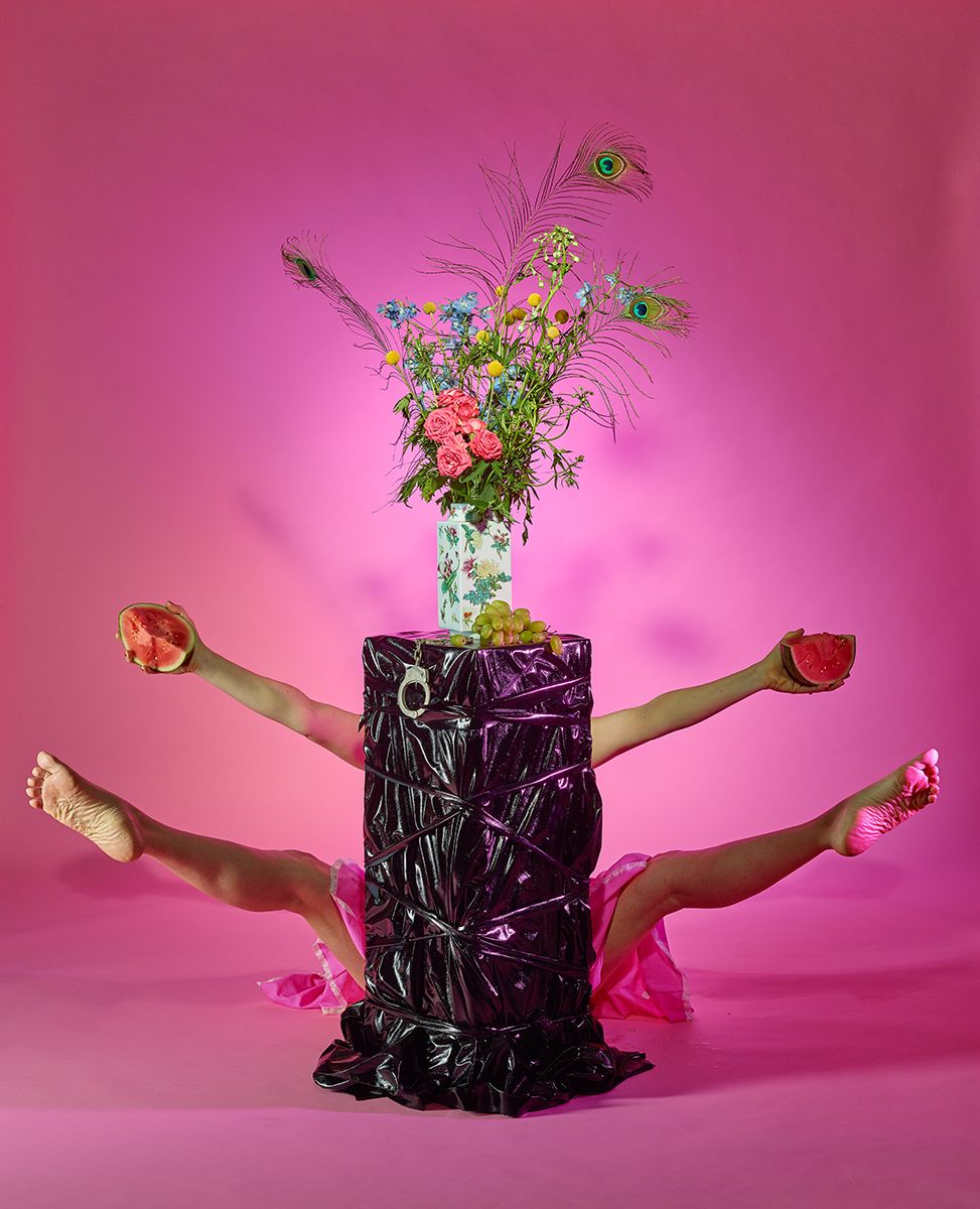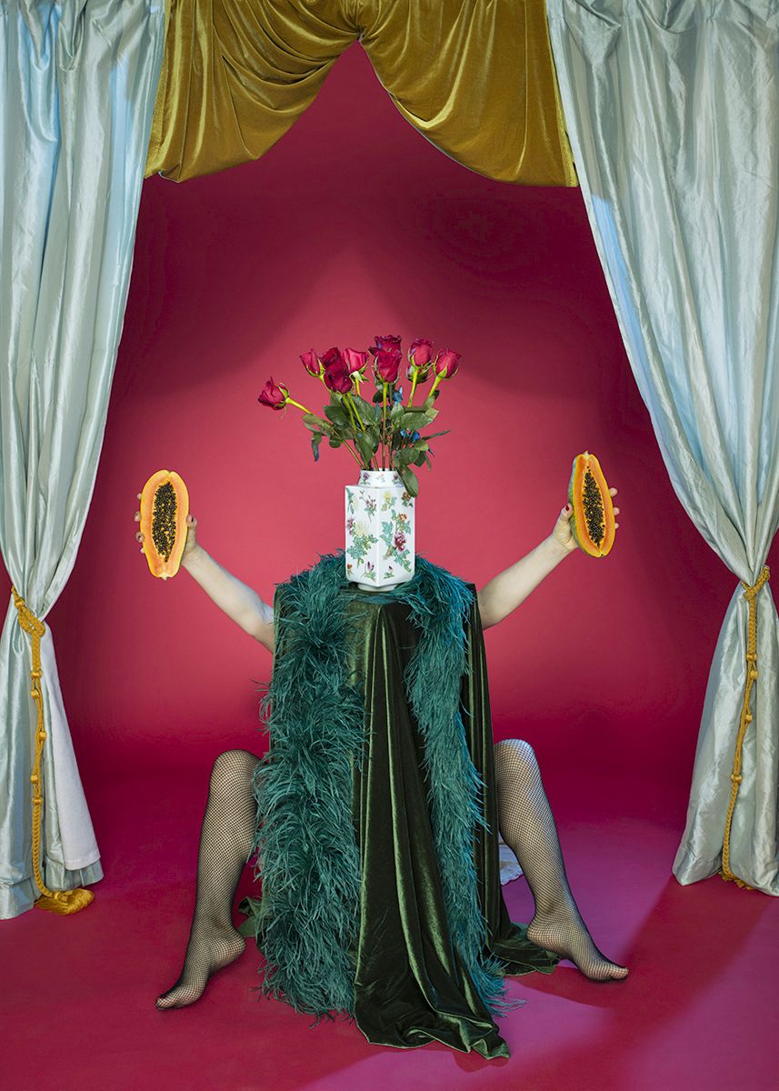 Selections from “Ritual” A body of work that examines the intersection of seduction, mysticism, and performance. Surrounding herself with constructed still life moments, Rowan's self-portraits play on the idea of ancient fertility rites and harken the veiled eroticism of vintage burlesque performers. This project explores the connection between mating rituals, sexuality, and power within the context of domestic relationships. Shot 4x5 color Kodak film to achieve the lush, timeless feeling of Dutch Still life paintings.