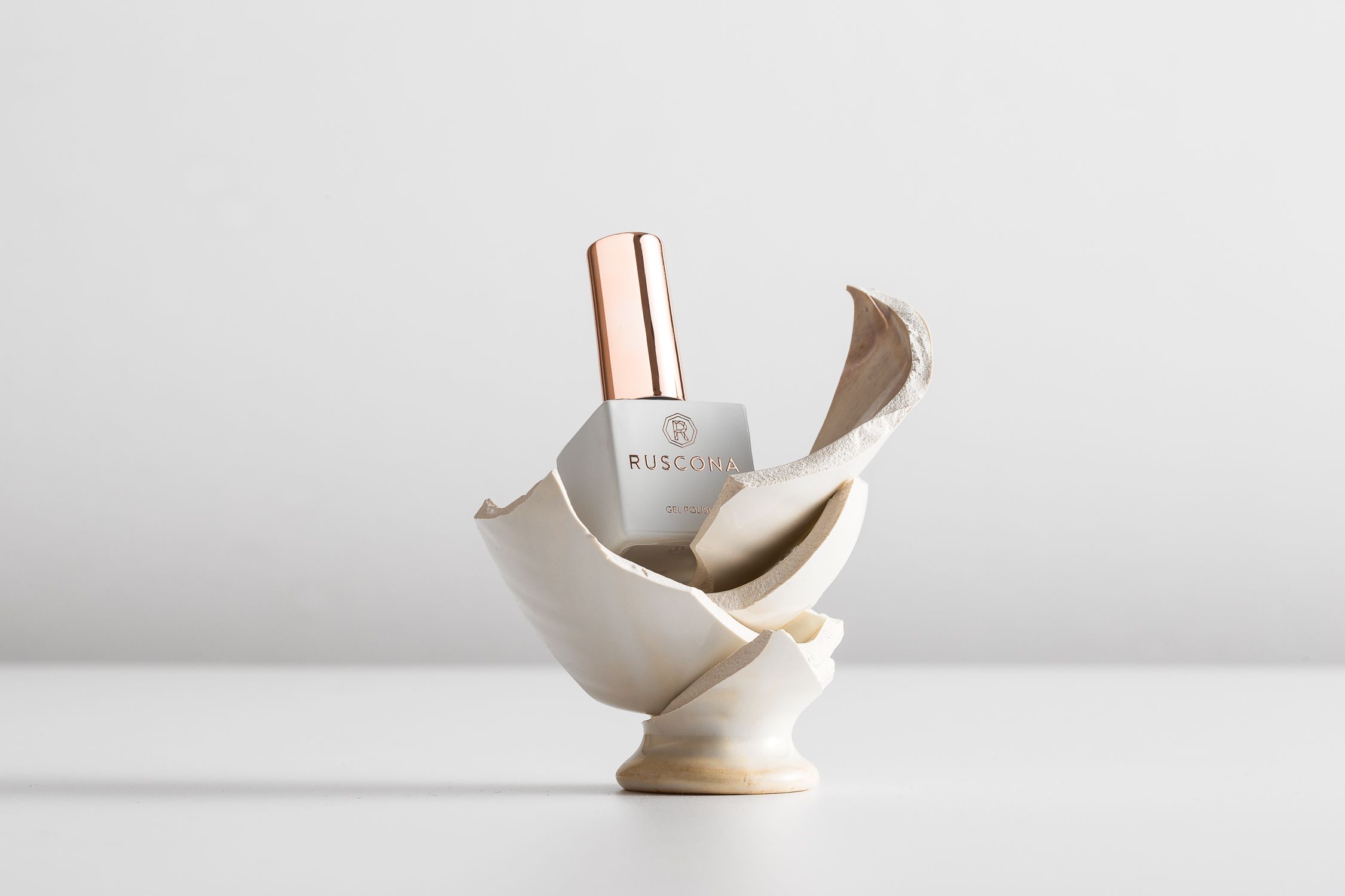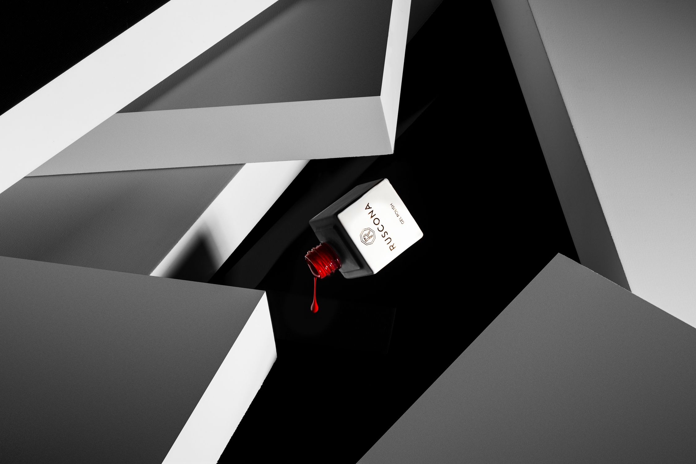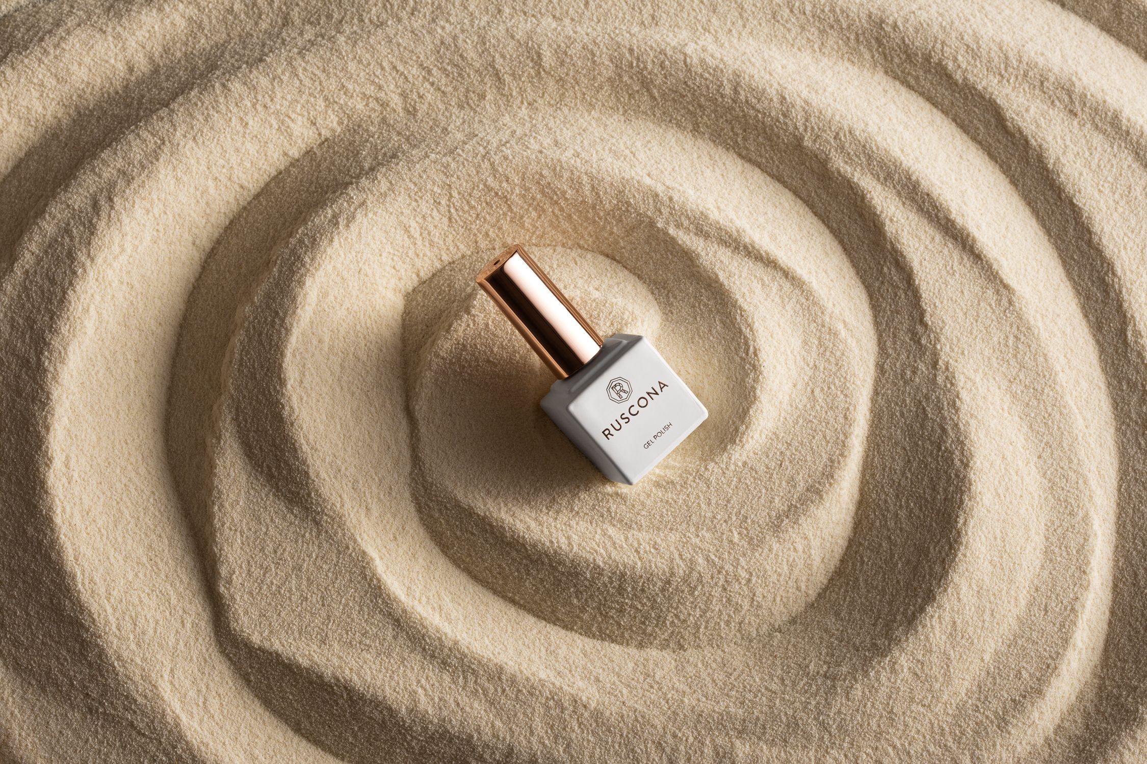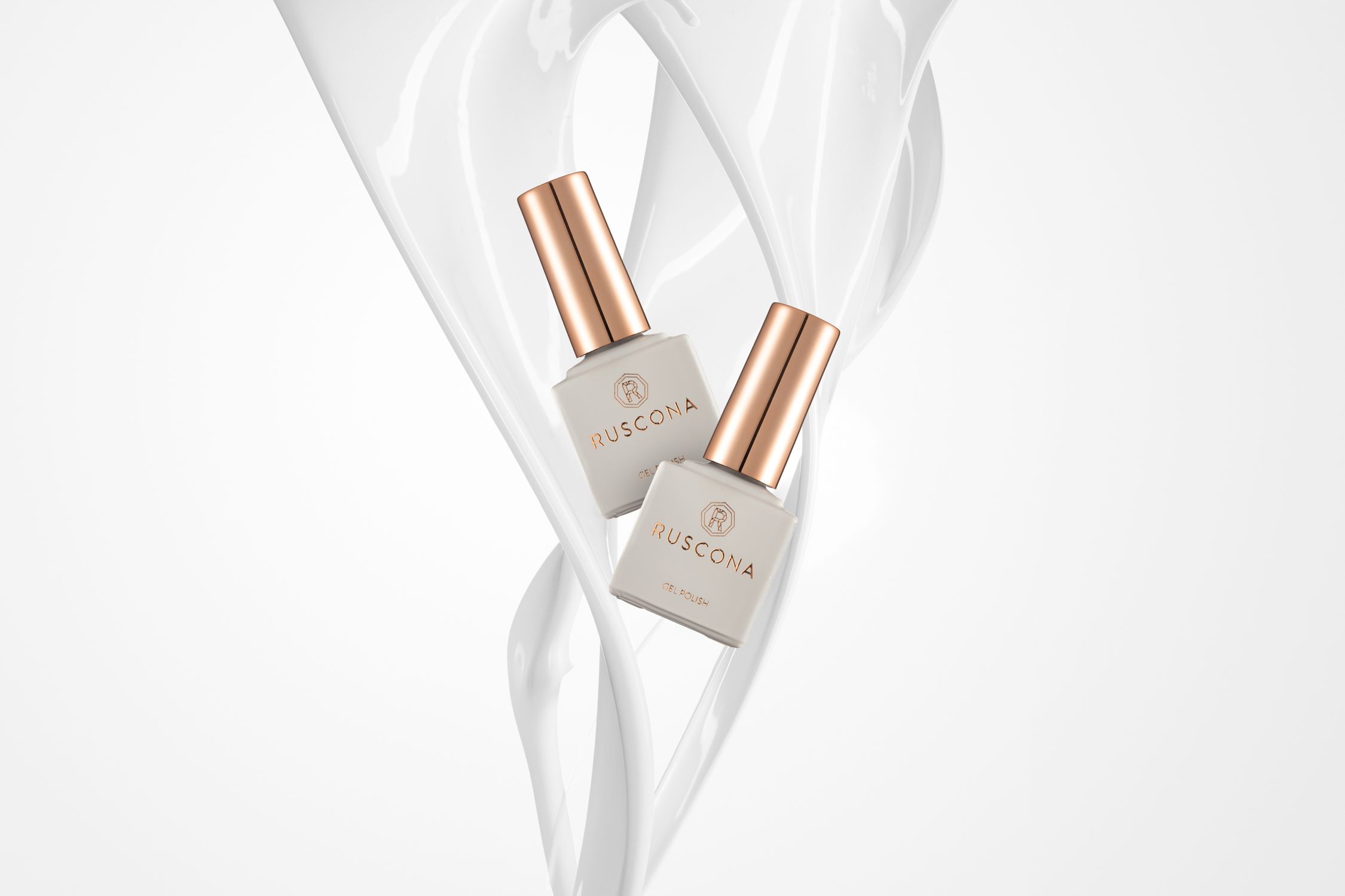 My vision was to keep the design simple yet unique and deeply orientated towards the brand and product on show. Nail polish bottles are generally a small object and require slightly different treatment than, say, photographing a large carry bag. The bottle needed to be centered and close up enough to capture the logo and brand name. Each bottle was cubed-shaped, with a matt-pastel color, the same as the gel nail polish inside. The lids (bottle tops) were long, gold colored. This color really illuminates the final image and casts long diagonal lines as the viewer follows it up.