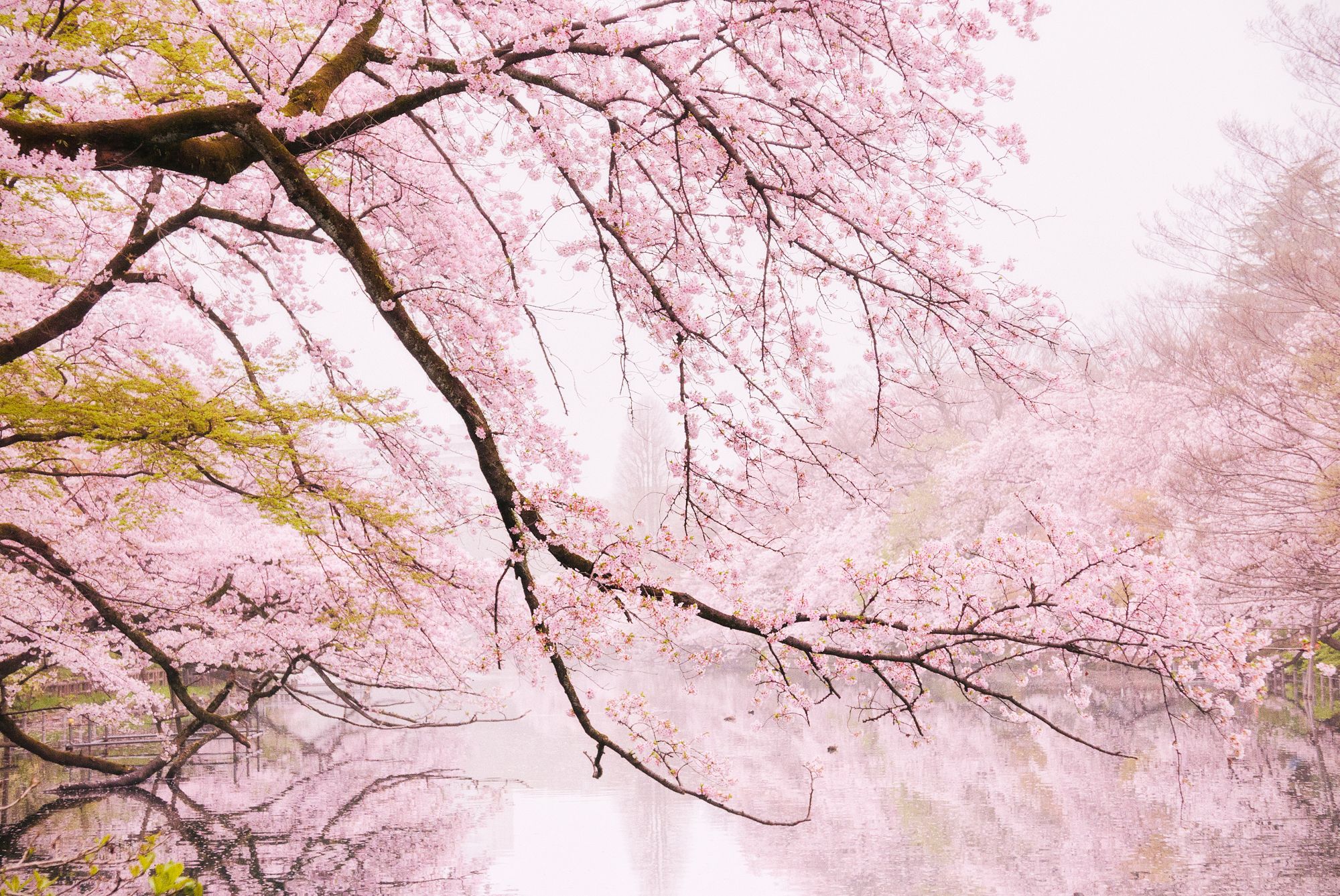 After the rain, the cherry blossoms in the fog were beautiful.