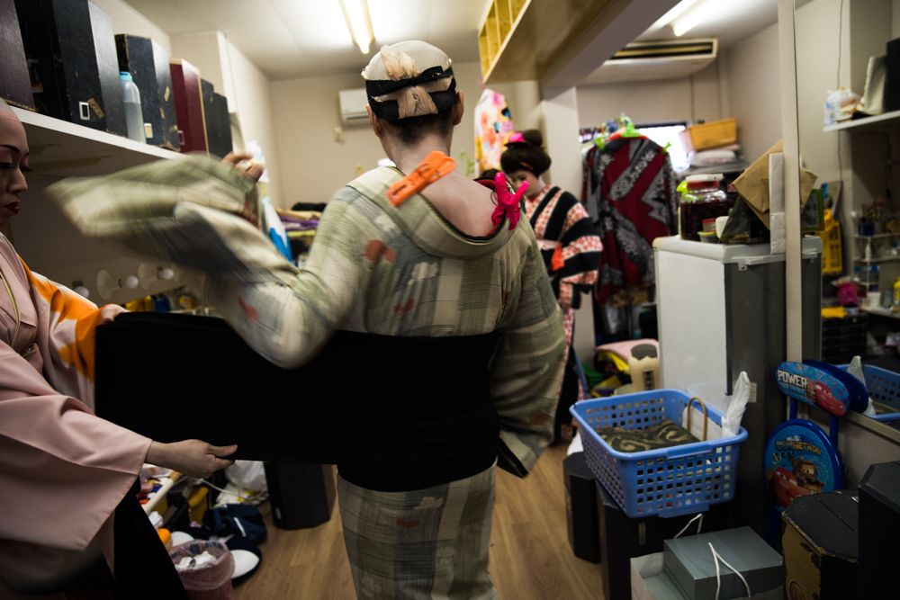 Small theater troupes called "Taishu Engeki”(popular drama)are like traveling circus in japan. Their performance style is remarkably unique showing dramas and dances wearing flashy costumes and wigs. They perform at one location for about a month, then pack every thing and move to next location. Wondering where exactly home can be for the people who continuously travel,I tried to find and capture the true faces of behind the stage. However, a thought grew gradually in my mind that for them, life as being actors,their “stage” is really their “home”